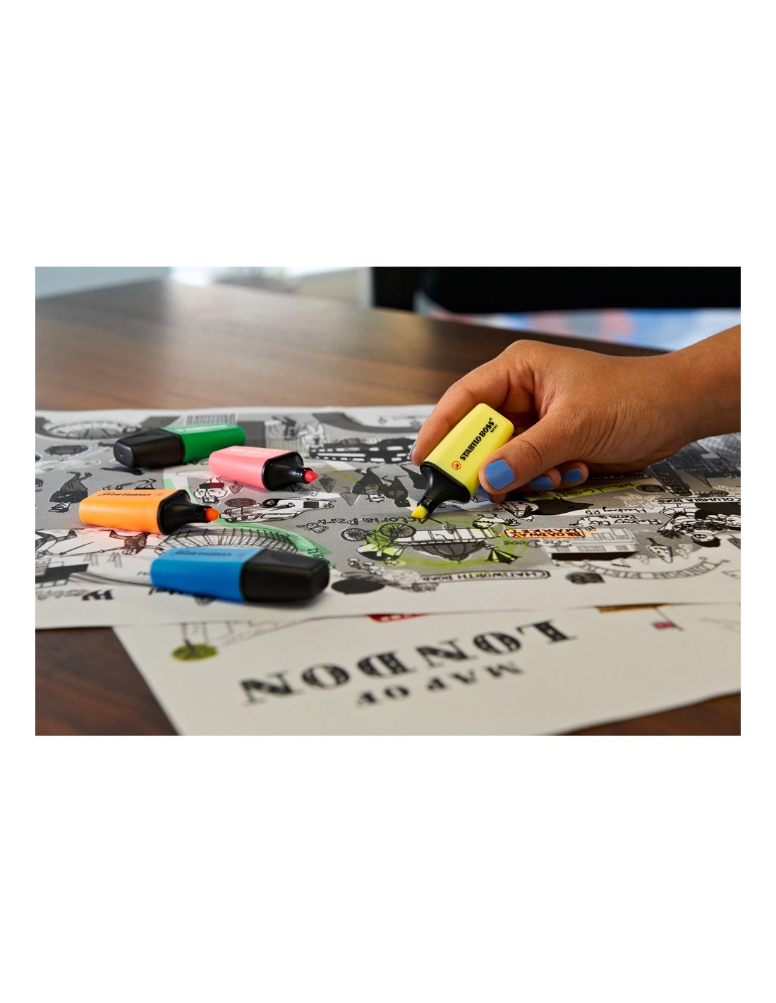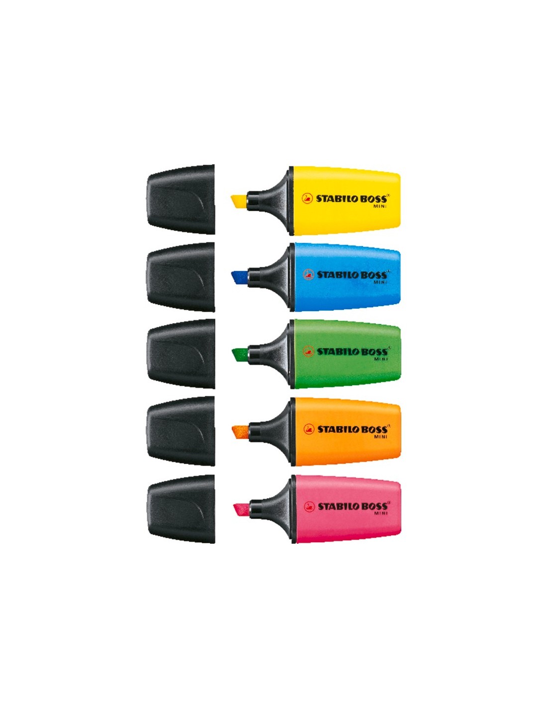 El clásico STABILO BOSS ORIGINAL en formato mini. Disponible en 5 colores fluorescentes. Hasta 4 horas destapado sin secarse para poder concentrarse en el trabajo. Resistente a la luz en todo tipo de papel: normal, fax y fotocopia. Punta biselada. Trazo de 2-5 mm.