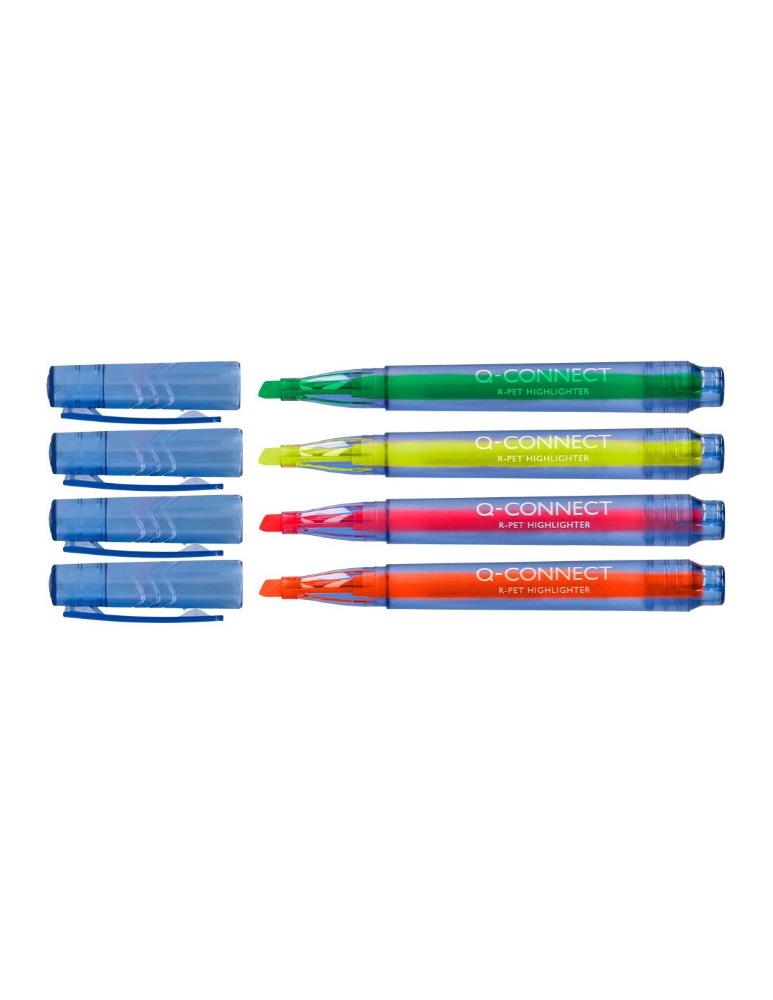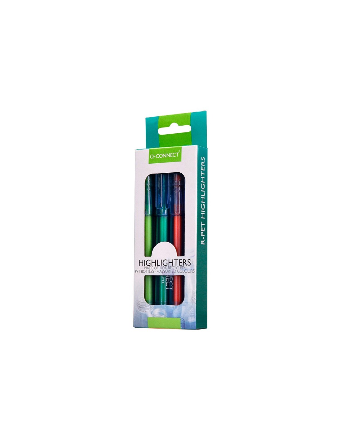 Rotulador fluorescente con punta biselada para resaltar información importante. Adecuado para la mayoría de los papeles. Cuerpo de plástico reciclado procedente de botellas de agua recicladas. 4 Colores vibrantes: amarillo, naranja, rosa y verde. Estuche de 4 rotuladores colores surtidos.