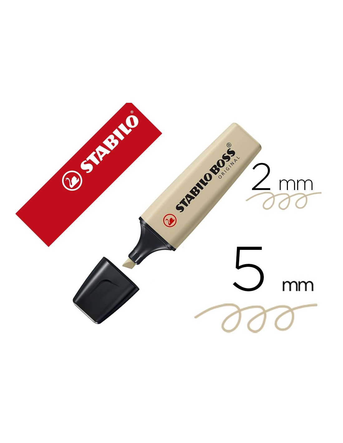 Rotulador fluorescente Stabilo Boss Original Pastel Nature Colors. Antisecado, hasta 4 horas destapado sin secarse para poder concentrarse en el trabajo. Resistente a la luz en todo tipo de papel normal, térmico y fotocopias. Punta biselada. Trazo de 2 a 5 mm. Color verde barro.