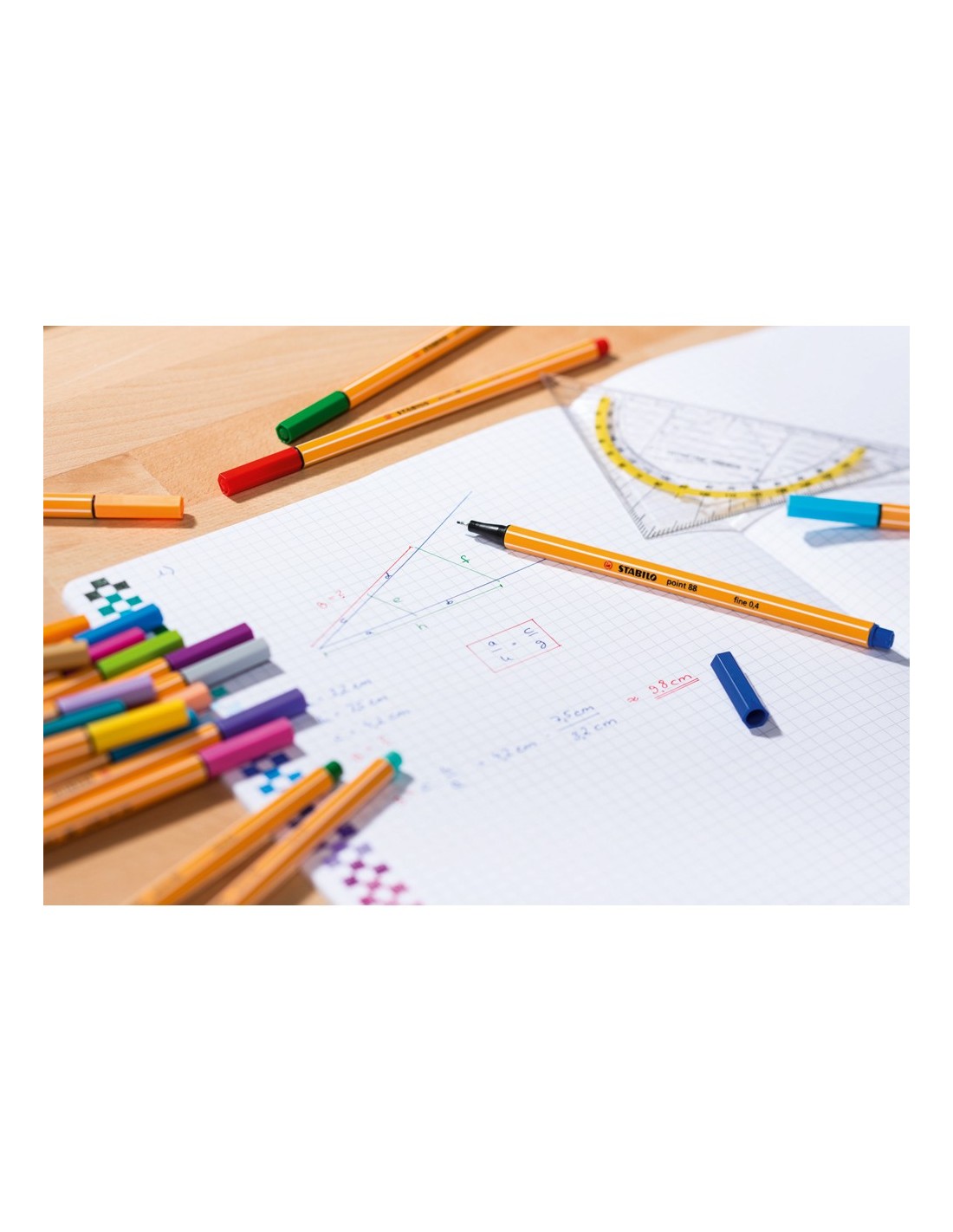Rotulador con punta fina número uno en Europa. Con un diseño hexagonal de finas líneas inconfundibles. Punta de fibra con refuerzo de metal para una larga vida. Apta para usar con reglas y plantillas. Tinta con base al agua. Larga vida sin tapón. Trazo de 0,4 mm.