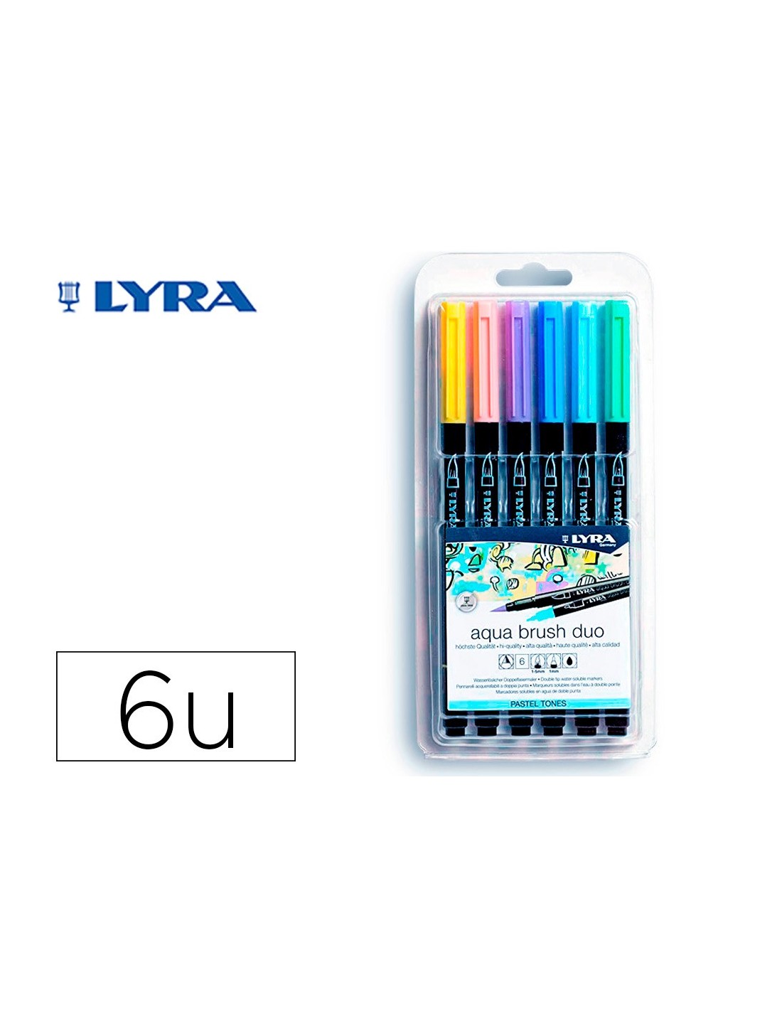 ROTULADOR LYRA AQUA BRUSH ACUARELABLE DOBLE TONOS PASTEL 6 UD.SURT.