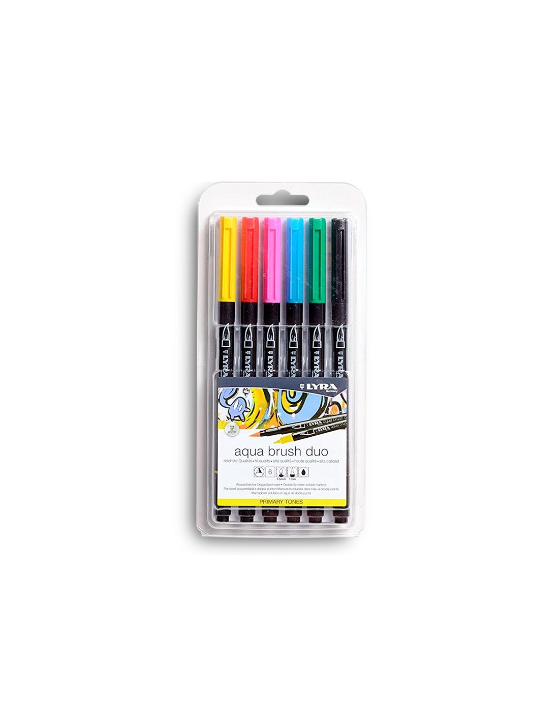 ROTULADOR LYRA AQUA BRUSH ACUARELABLE DOBLE TONOS PRIMARIOS 6 UD.