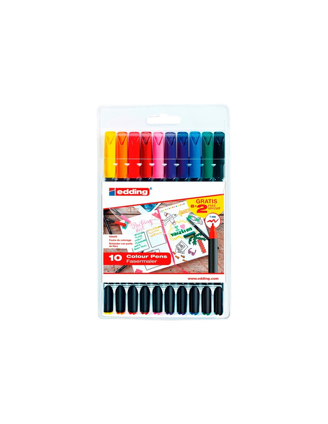 Para escribir, dibujar, bocetar y anotar. Punta resistente fina. Tinta a base de agua altamente resistente a la acción de la luz. Amplia gama de color. Uso profesional, doméstico y escolar. Trazo: 1 mm. Colores surtidos.