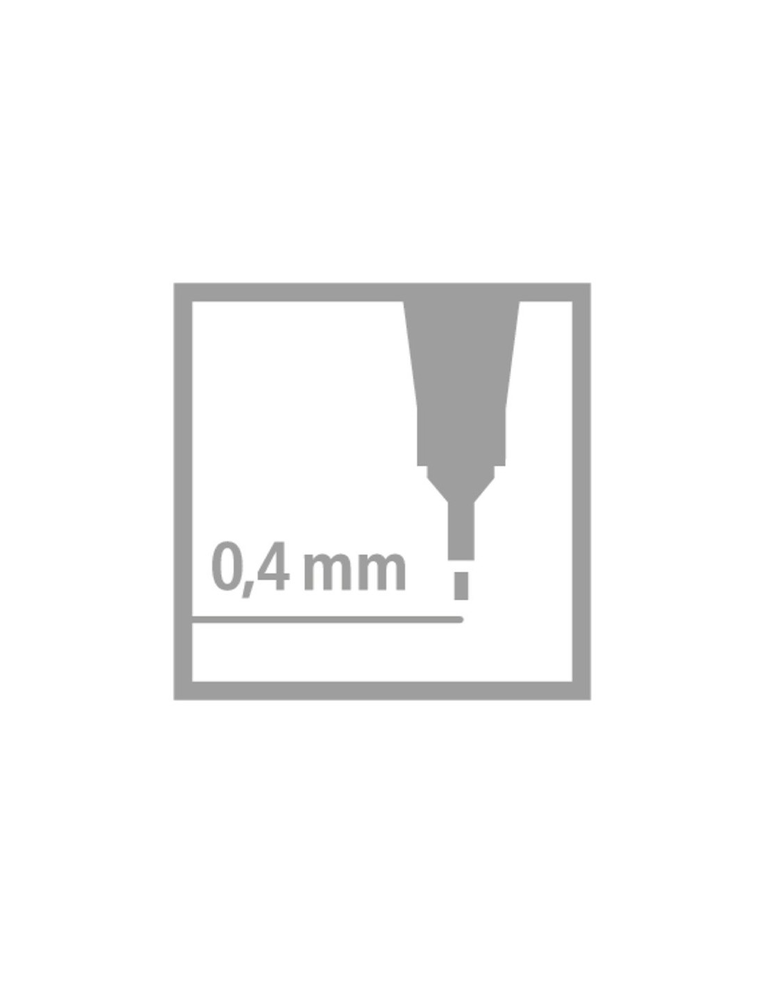 Rotulador con punta fina número uno en Europa. Con un diseño hexagonal de finas líneas inconfundibles. Punta de fibra con refuerzo de metal para una larga vida. Apta para usar con reglas y plantillas. Tinta con base al agua. Larga vida sin tapón. Trazo de 0,4 mm.