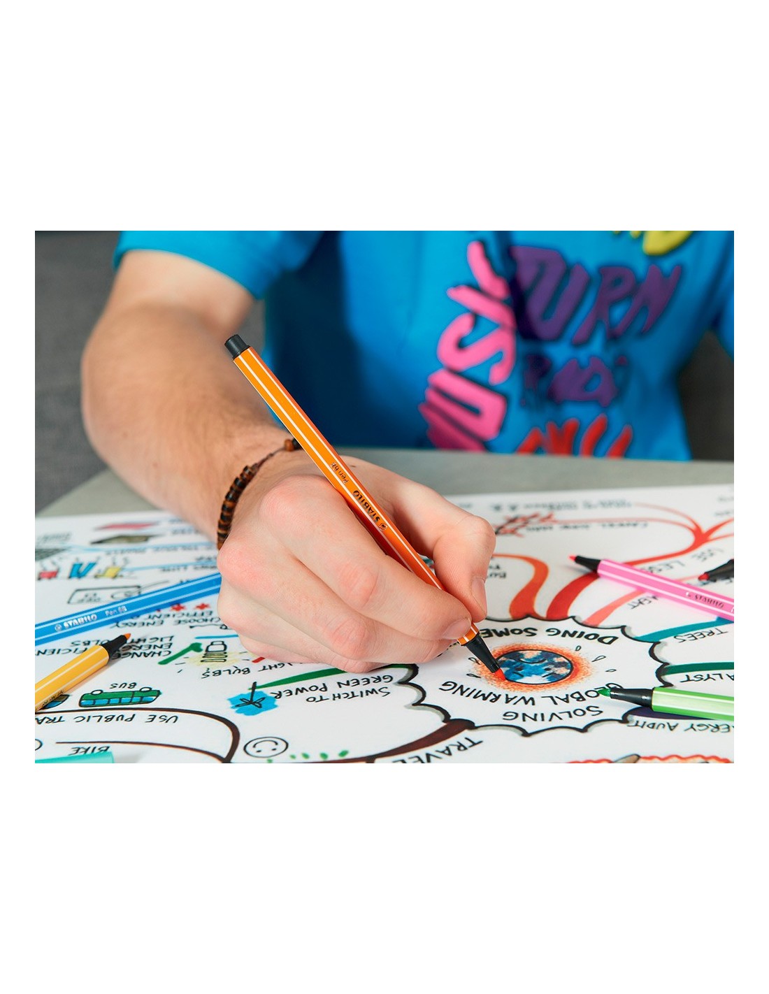 Rotulador con intensos colores. Punta redonda de fibra muy resistente. Colores brillantes. Se puede usar para escribir o colorear. Tinta con base de agua casi inodora. Trazo de 1 mm.