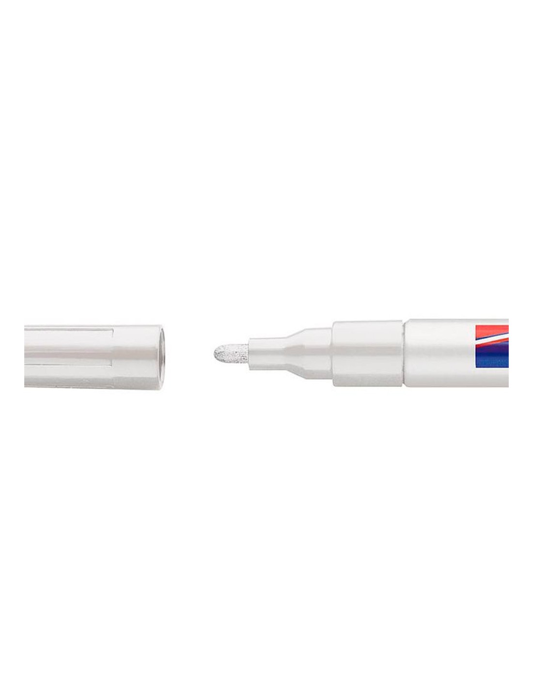 Marcador de tinta permanente opaca con punta redonda. Se activa mediante sistema de bombeo. Para marcar sobre casi todo tipo de superficies como madera, vidrio, plástico y metal. Gran cobertura y efecto lacado indicado para escribir sobre materiales transparentes y oscuros. Secado rápido. Resistente al agua y a la acción de la luz, al roce y al calor hasta 400ºC. Cuerpo de aluminio. Recargable. Tinta casi inodora. Trazo entre 1 y 2 mm.