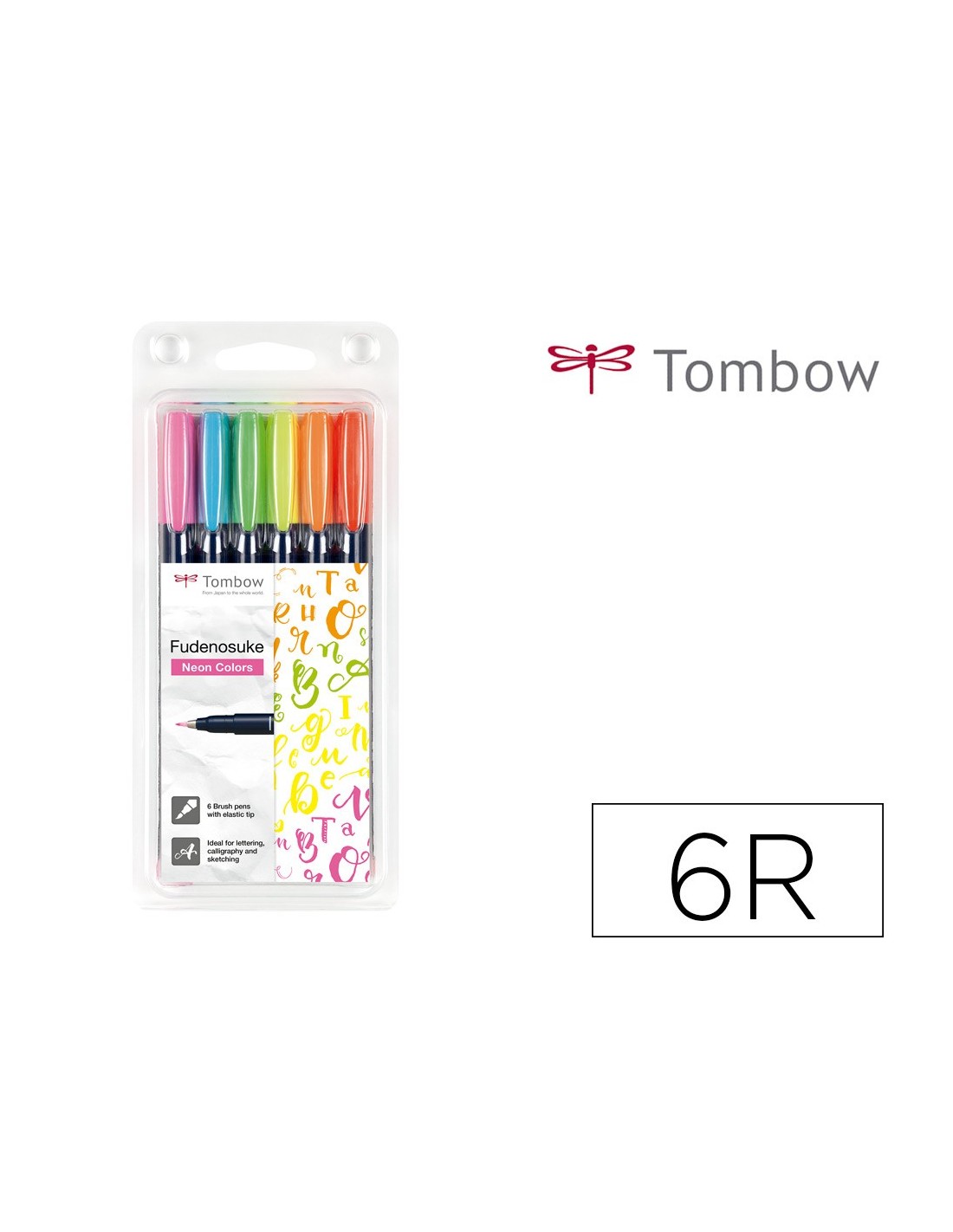 ROTULADOR TOMBOW PINCEL DUAL FUDENO DURA TINTA BASE AGUA 6 UD.NEON