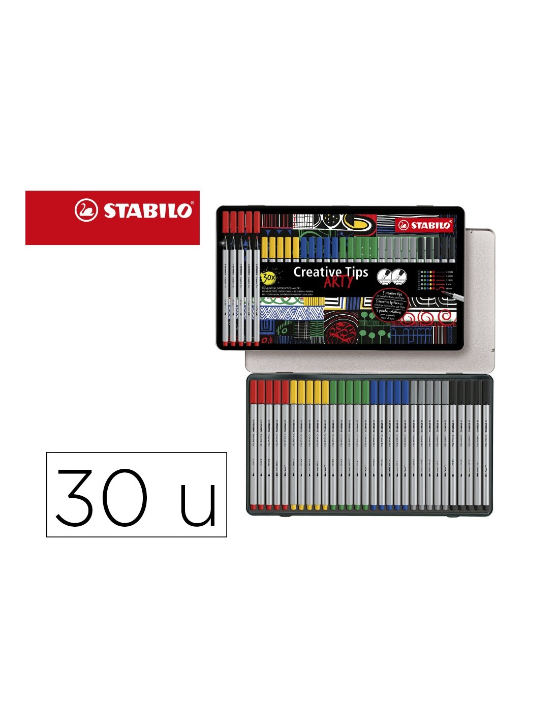 ROTULADOR STABILO CREATIVE TIPS. ESTUCHE ARTY CON 30 ROTULADORES DE PUNTA CALIBRADA,5 PUNTAS DIFERENTES EN 6 COLORES.