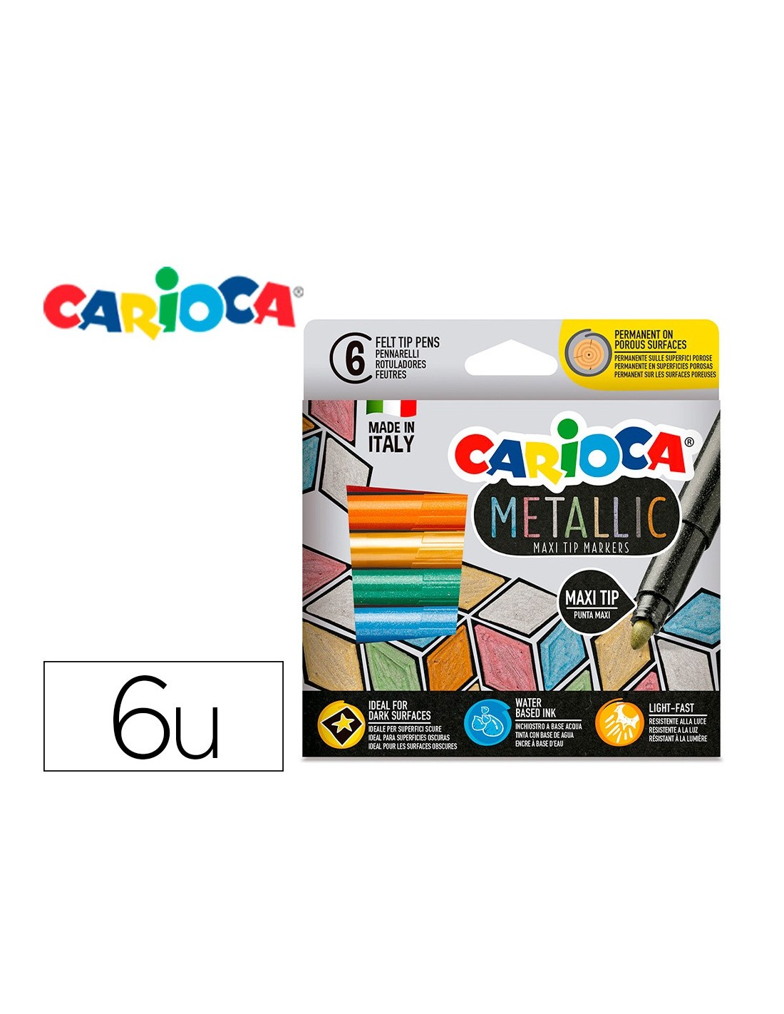ROTULADOR CARIOCA METALLIC PUNTA MAXI 6MM CAJA 6 SURT.