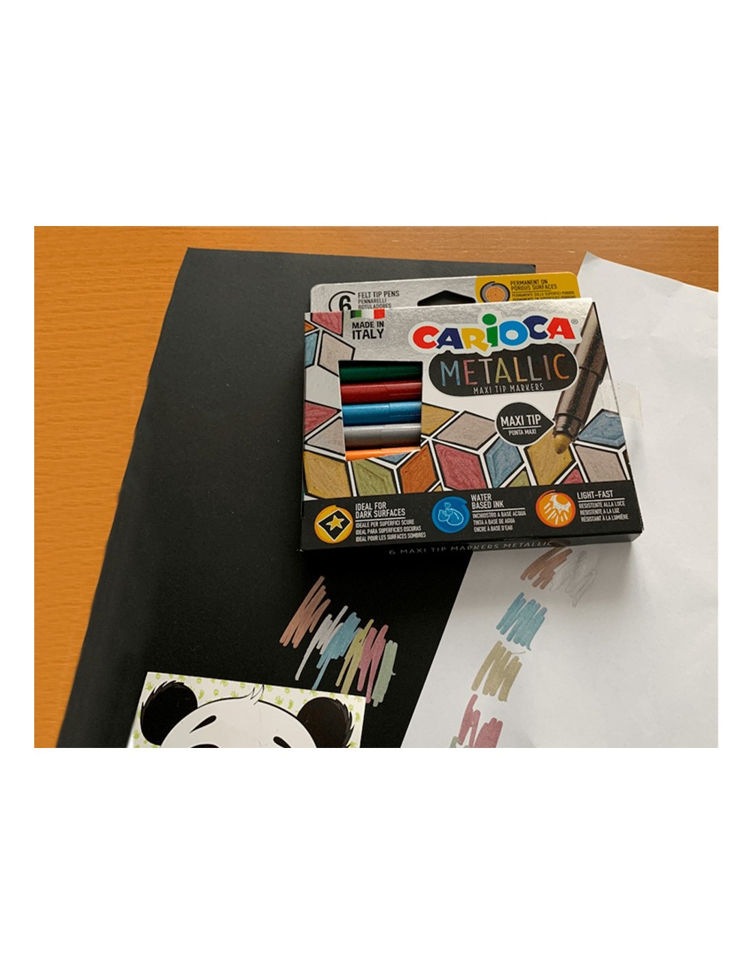 Rotulador con punta maxi de 6 mm. Colores metálicos. Ideal sobre superficies oscuras como el color negro. 6 colores surtidos.