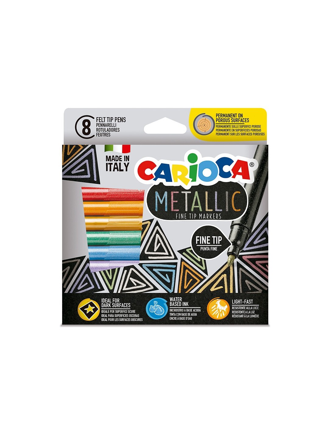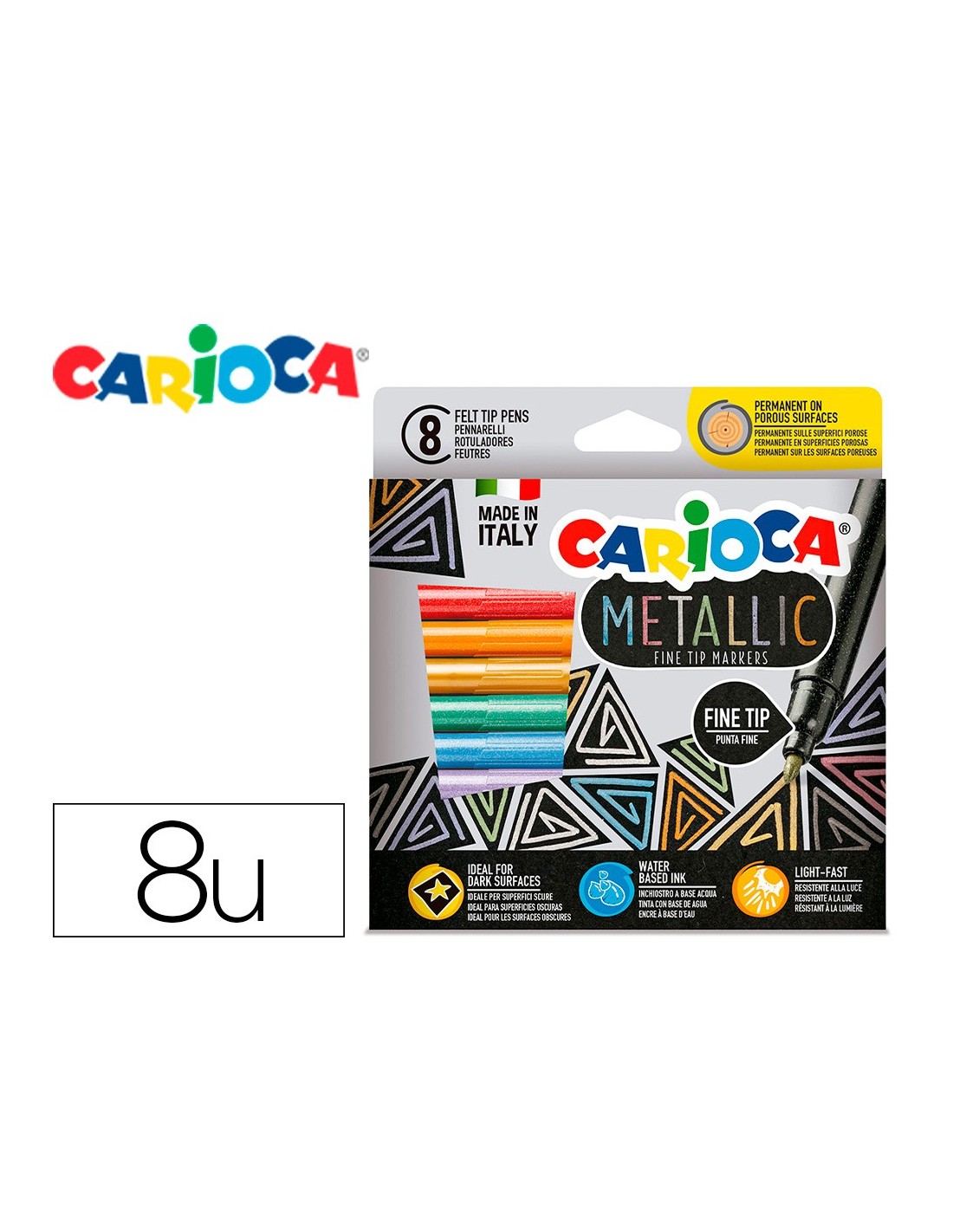 Rotulador con punta fina de 2,8 mm. Colores metálicos. Ideal sobre superficies oscuras como el negro. 8 colores surtidos.