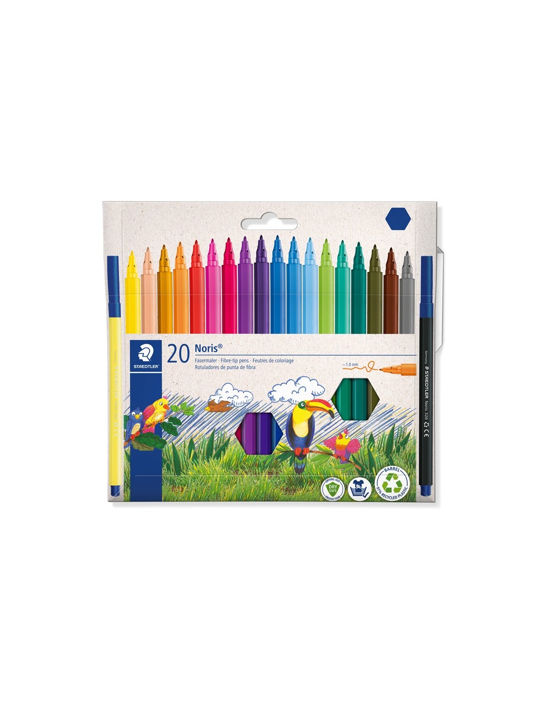 Rotulador NORIS punta de fibra. Nuevo Cuerpo hexagonal. Carcasa fabricada en un 97% de plástico reciclado (cuerpo, capuchón y embellecedor) según ISO 14021. Tinta ANTISECADO: puede permanecer destapado durante días sin secarse (test ISO 554)