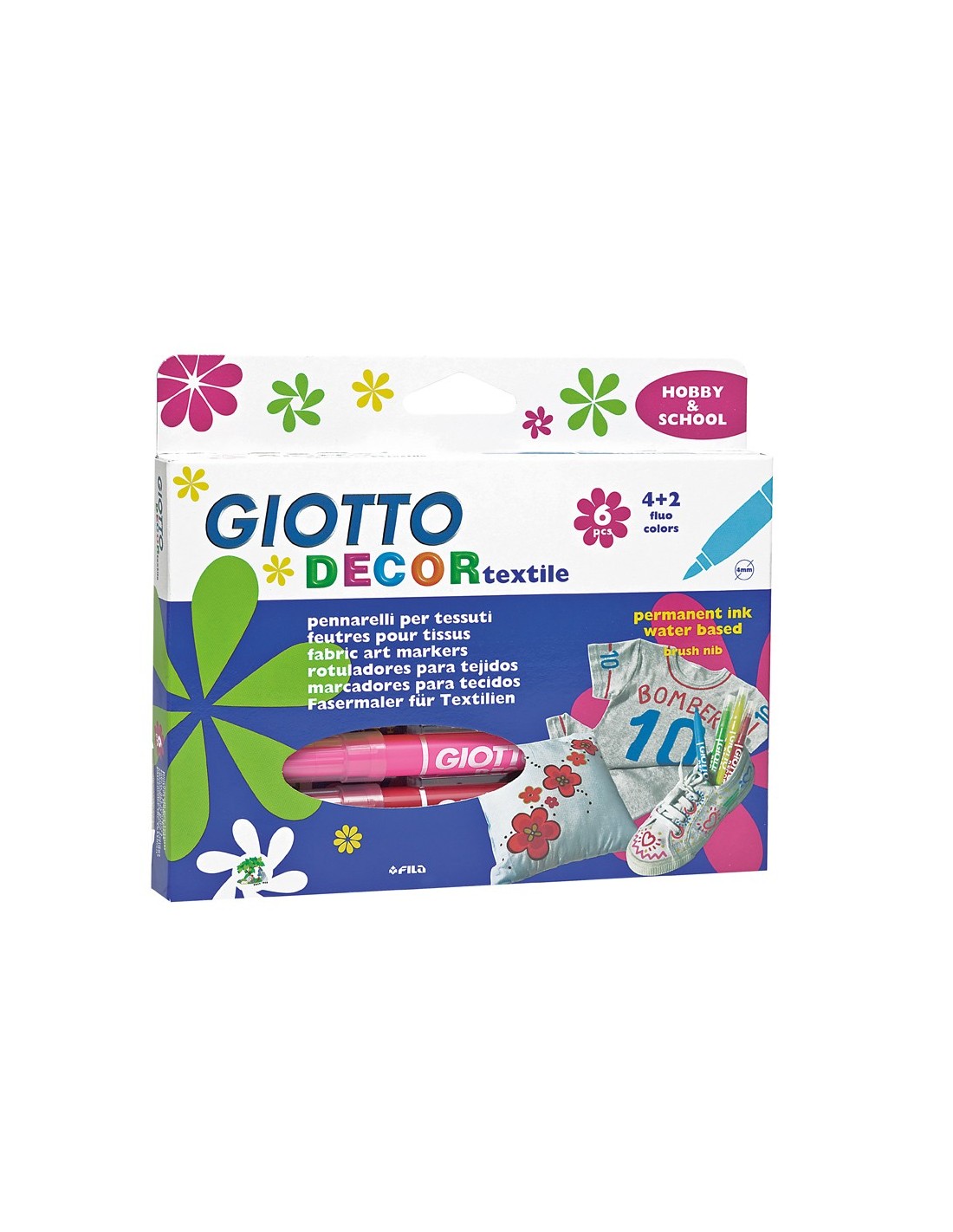 Rotuladores para tejidos con tinta permanente a base de agua. Especial punta de pincel. Para fijar mejor el color, pasar la plancha caliente sobre el dibujo. Irrompibles. No tóxicos. Capuchón ventilado. Punta de 4 mm. Resisten lavados de hasta 40 . La caja.