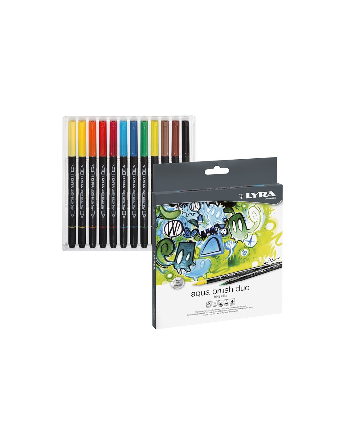 Rotulador con punta de pincel para artistas, diseñadores y también aficionados de todas las edades. Punta de fibra resistente. Por el otro lado hay una punta fina de 1 mm, que permite realizar líneas muy precisas. Tinta a base de agua, sin disolventes.