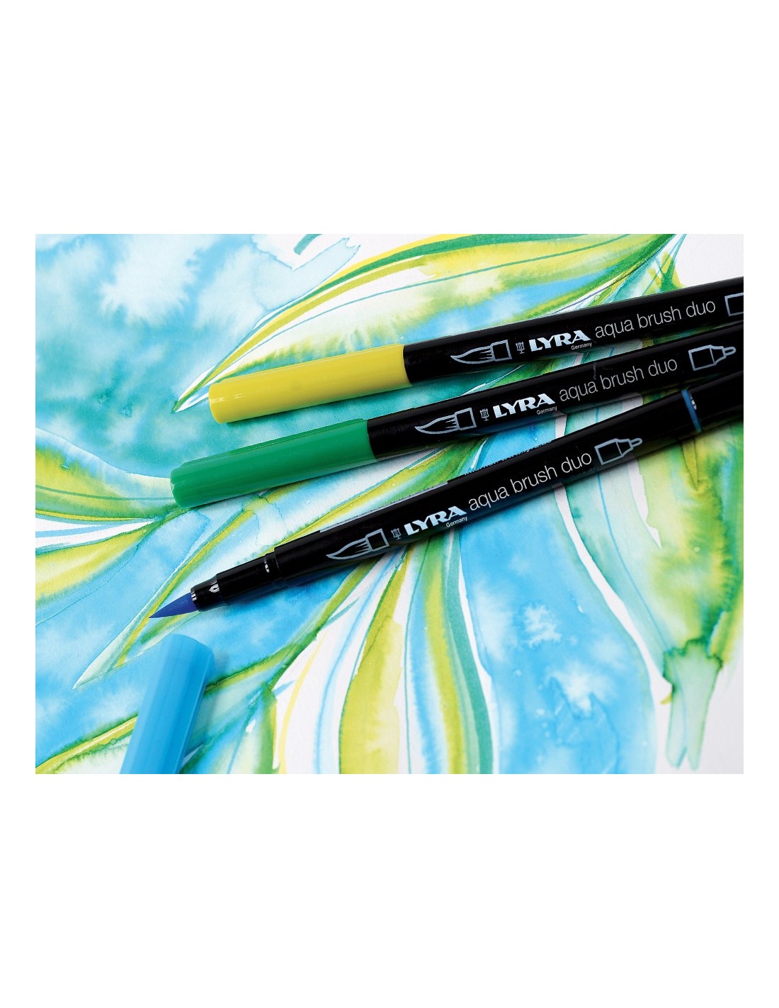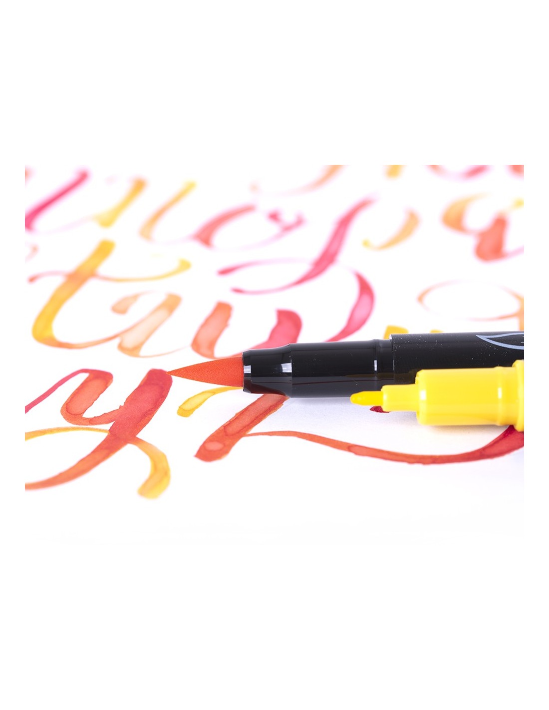Rotulador con punta de pincel para artistas, diseñadores y también aficionados de todas las edades. Punta de fibra resistente. Por el otro lado hay una punta fina de 1 mm, que permite realizar líneas muy precisas. Tinta a base de agua, sin disolventes.