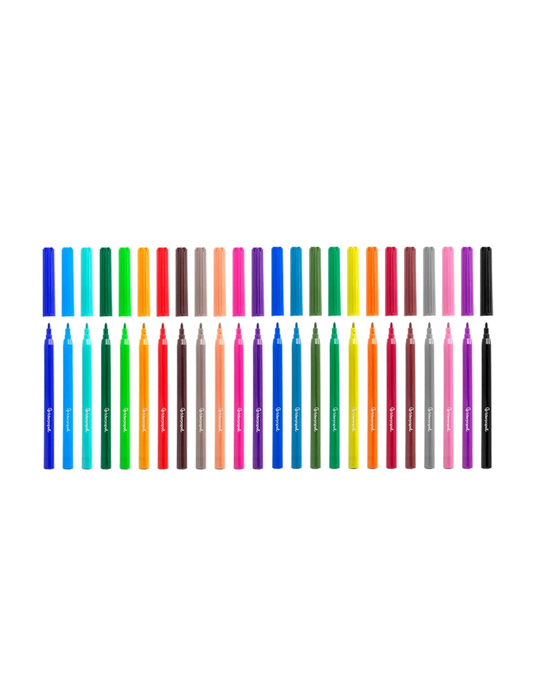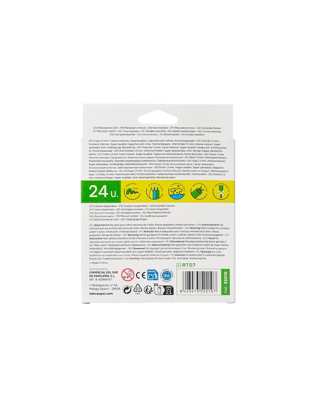 Rotulador con punta de nylon de 2 mm de diámetro. Tinta a base de agua y colorantes alimentarios inocuos y lavables. Permite hasta 800 m de escritura. Punta bloqueada. Tapón ventilado. La caja.