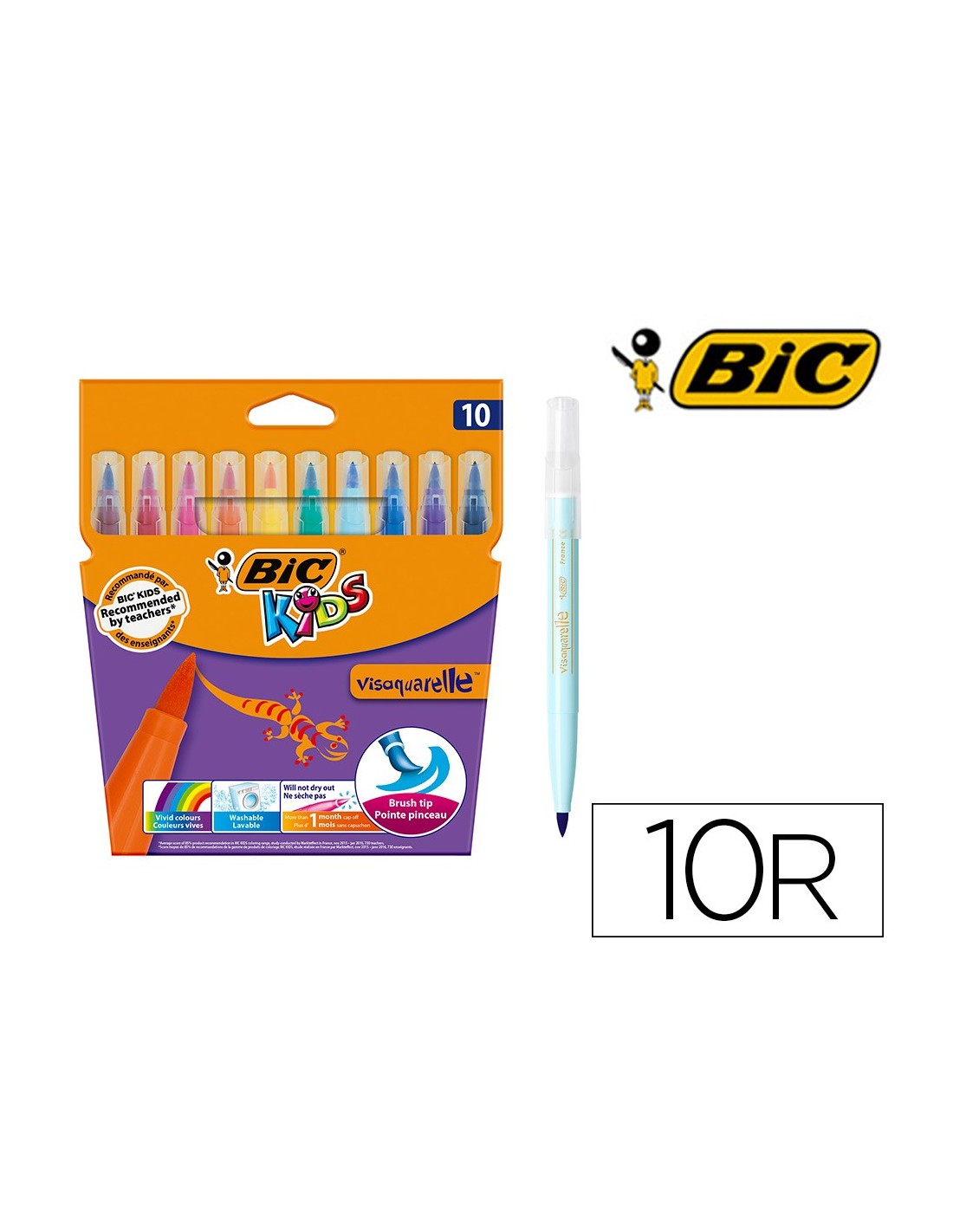ROTULADOR BIC KIDS 10 COLORES PUNTA PINCEL TINTA BASE AGUA 828964