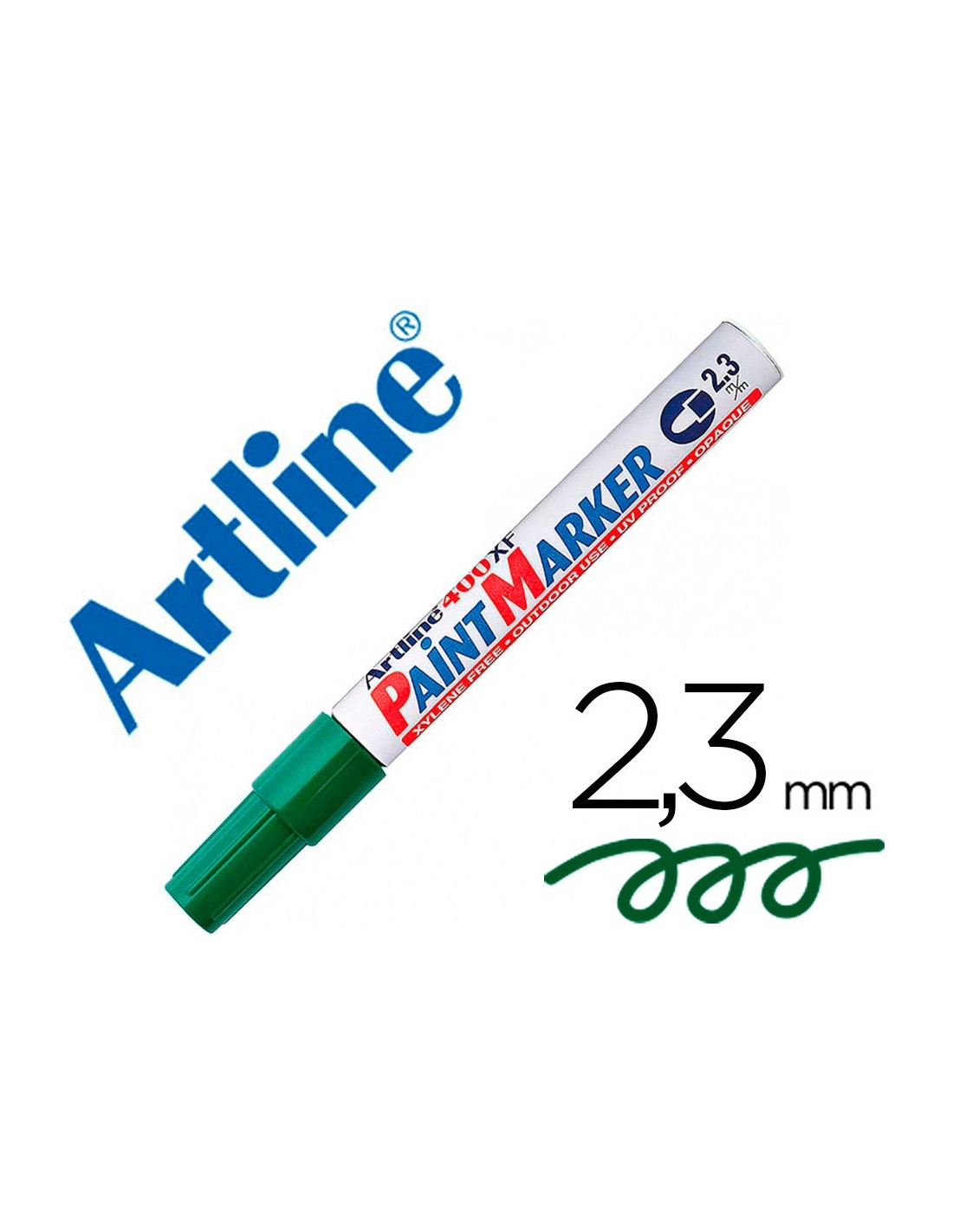 ROTULADOR ARTLINE MARCADOR PERMANENTE EK-400 XF VERDE -PUNTA REDONDA 2.3 MM -METAL CAUCHO Y PLASTICO