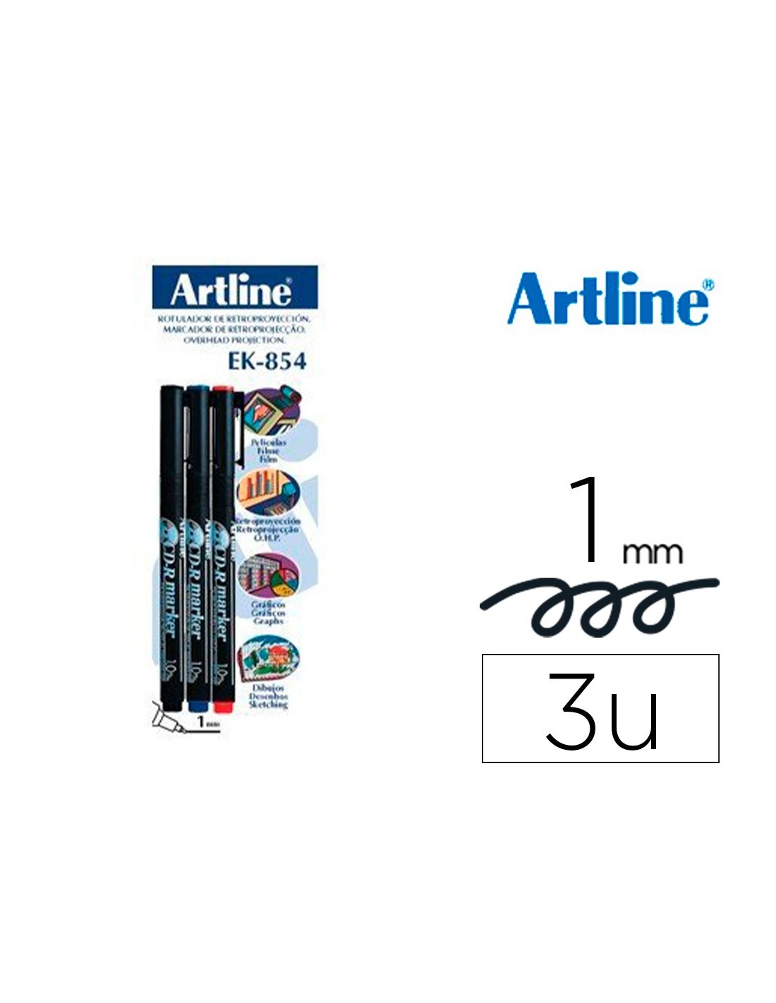 ROTULADOR ARTLINE RETROPROYECCION PUNTA FIBRA PERMANENTE EK-854 1 MM -BLISTER DE 3 (1-NE 1-AZ 1-RO)