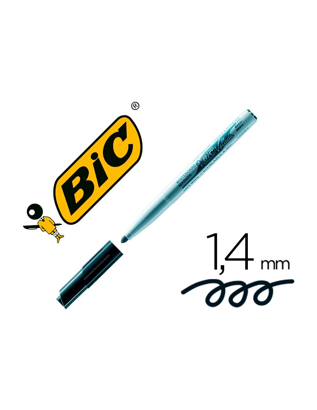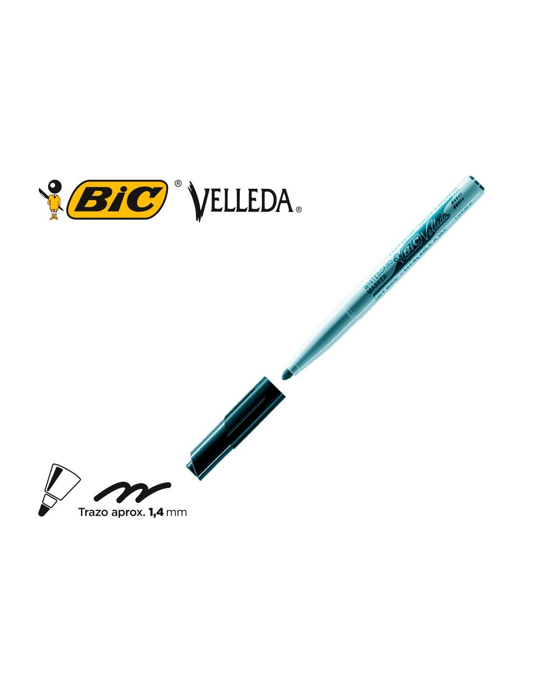 Rotulador para pizarra blanca con punta cónica muy resistente. Capuchón con cierre de seguridad. Cuerpo de plástico, fácil de sujetar. Práctico tamaño de bolsillo, con tinta a base de acetona, facilitando el borrado y mayor intensidad de la tinta. Punta redonda de 4,5 mm. Trazo de 1,4 mm.