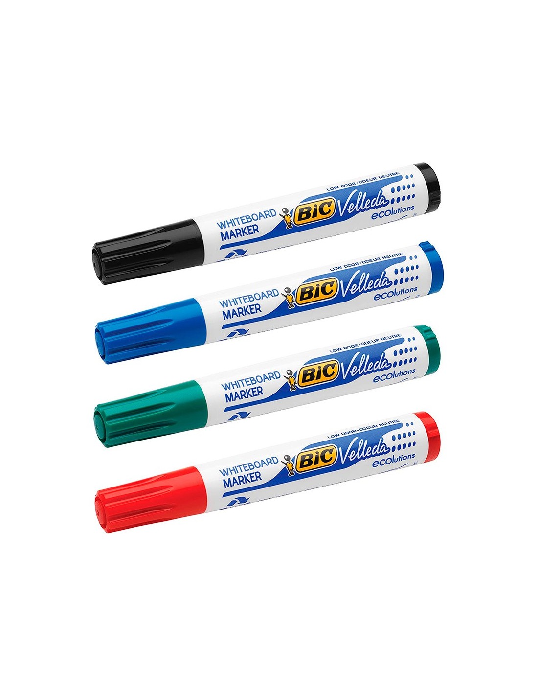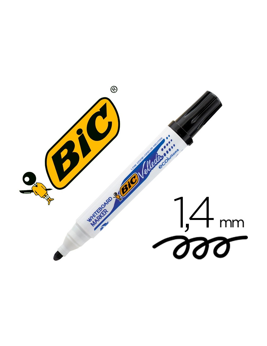 Rotulador para pizarra blanca con punta redonda cónica. Tinta a base de alcohol que genera menos olor. Se borran en seco fácilmente incluso después de varios días. Punta de 4,95 mm. Trazo de 1,4 mm.