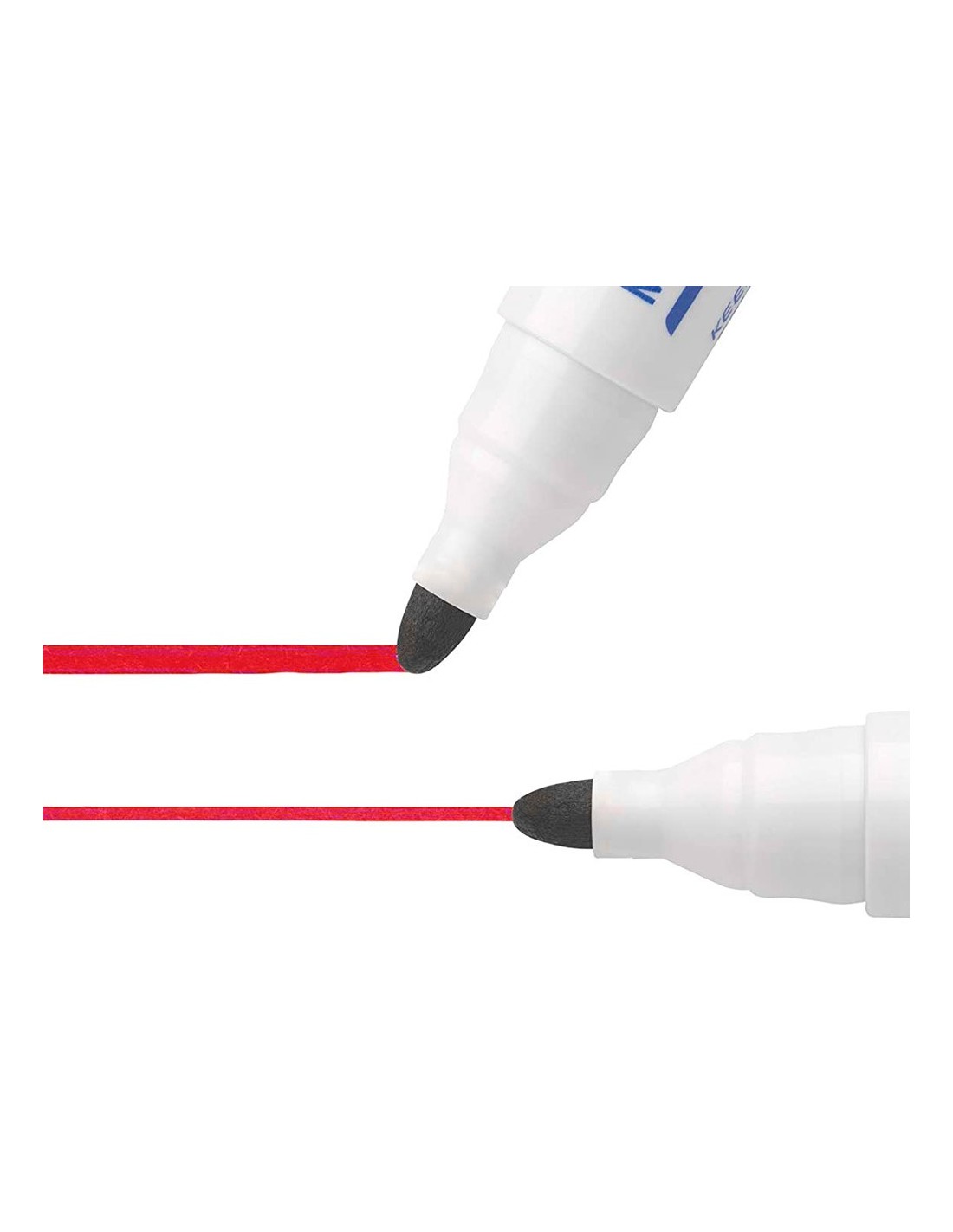 Rotulador para pizarra blanca con punta redonda cónica. Tinta a base de alcohol que genera menos olor. Se borran en seco fácilmente incluso después de varios días. Punta de 4,95 mm. Trazo de 1,4 mm.