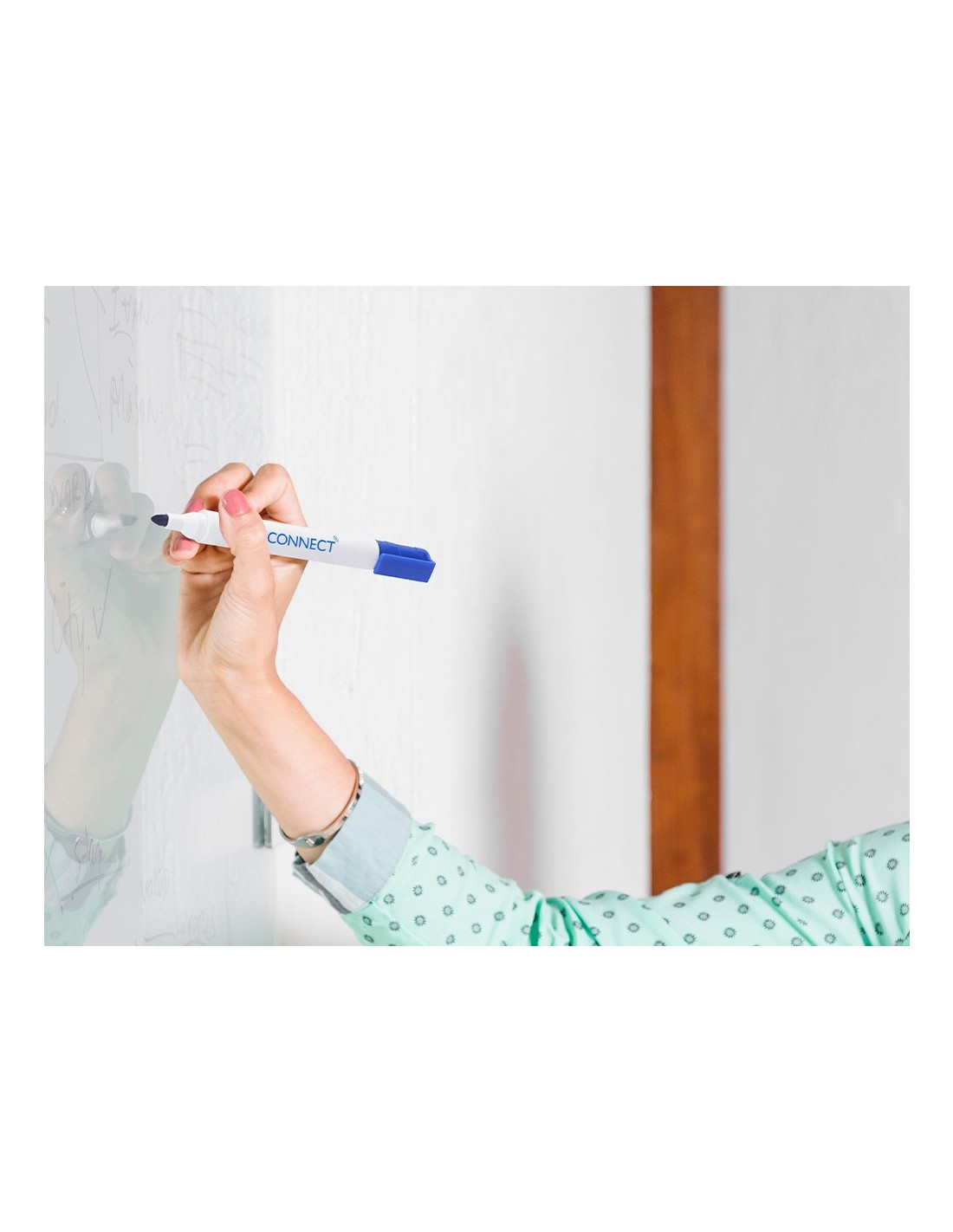 Rotulador para pizarras blancas con punta redonda. Cuerpo en color blanco y capuchón del color de la tinta. Trazo de 3 mm.
