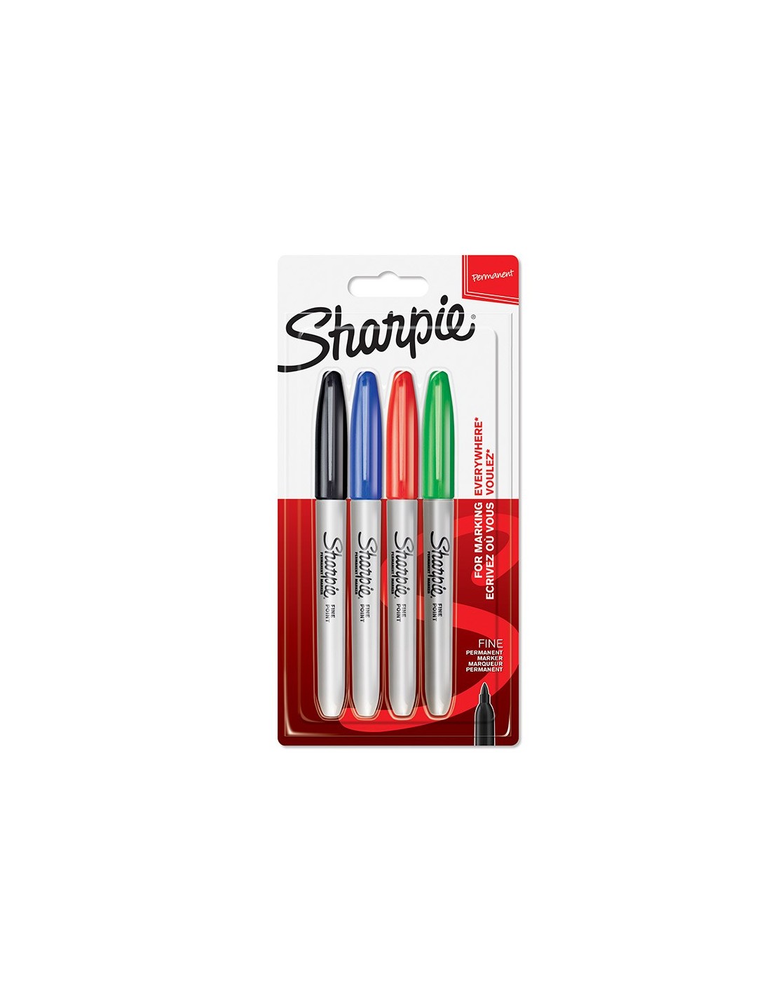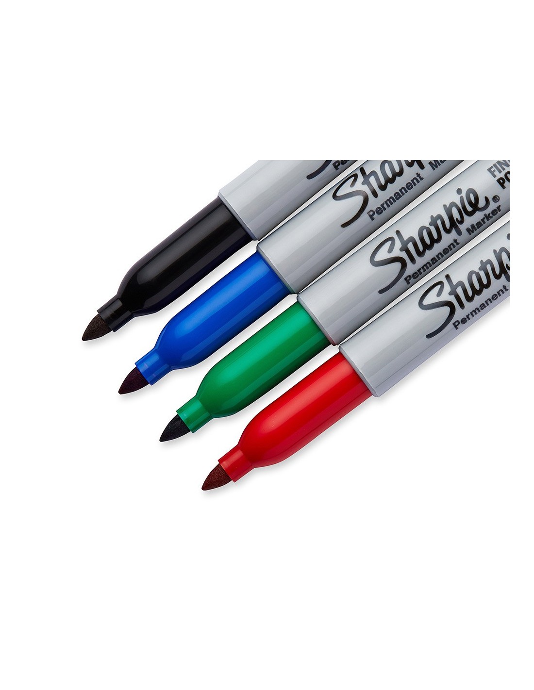 Este blister contiene 4 Sharpie Fine en los colores estándar negro, rojo, azul y verde. Los rotuladores permanentes Sharpie proporcionan niveles máximos de color y permanencia, y permiten transformar superficies convencionales en entusiastas expresiones creativas. Gracias a sus colores intensos,que se aplican en prácticamente cualquier superficie, estos rotuladores a cabarán con el aburrimiento. La icónica tinta de los rotuladores permanentes Sharpie, original e inconfundible, se seca rápidamente y resiste el desgaste y el contacto con el agua. Las imitaciones no perduran, pero las creaciones de los rotuladores Sharpie duran para siempre. Con una llamativa punta fina diseñada para impresionar, los rotuladores permanentes Sharpie harán aflorar su lado más atrevido.