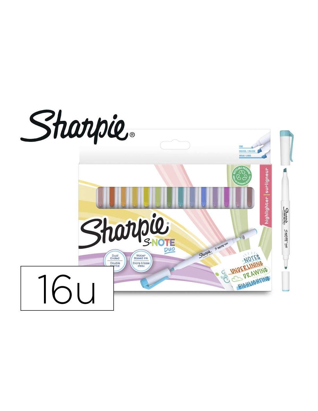 ROTULADOR SHARPIE S-NOTE DUO BLISTER DE 16 UNIDADES COLORES SURTIDOS