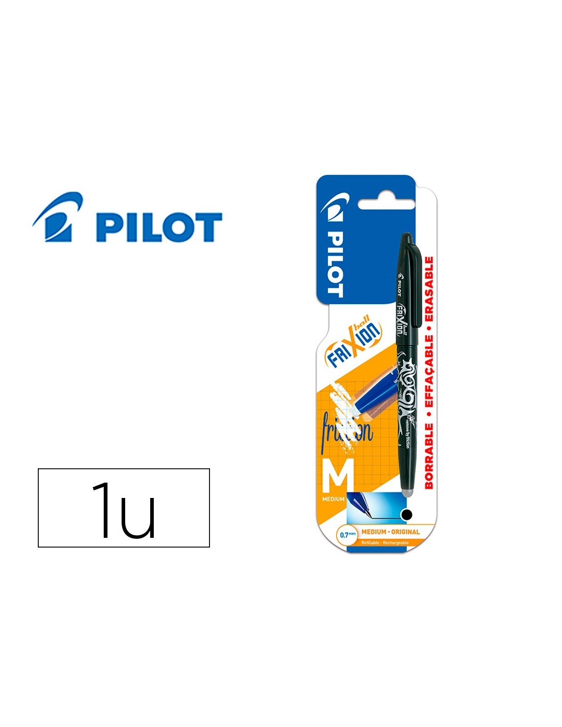 BOLIGRAFO PILOT FRIXION BALL BORRABLE 0,7 MM PUNTA MEDIA, COLOR NEGRO PRESENTACION EN BLISTER