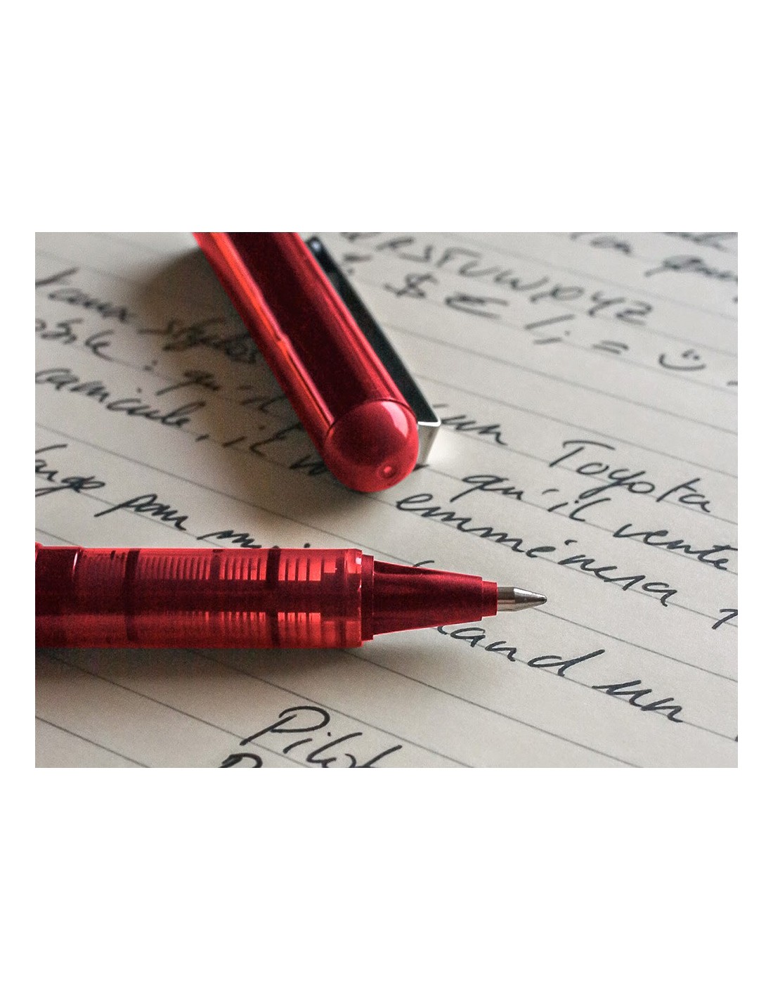 Rotulador de tinta líquida. Cuerpo del color de la tinta. Tubo de acero inoxidable. Con capuchón y visor de tinta. Diámetro de la bola de 0,5 mm. Trazo de 0,3 mm.