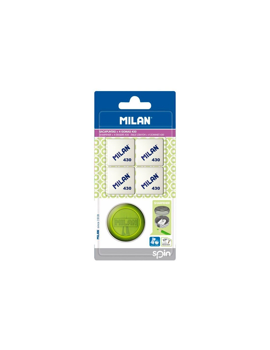 sacapuntas milan spin plastico 1 uso + 4 gomas 430