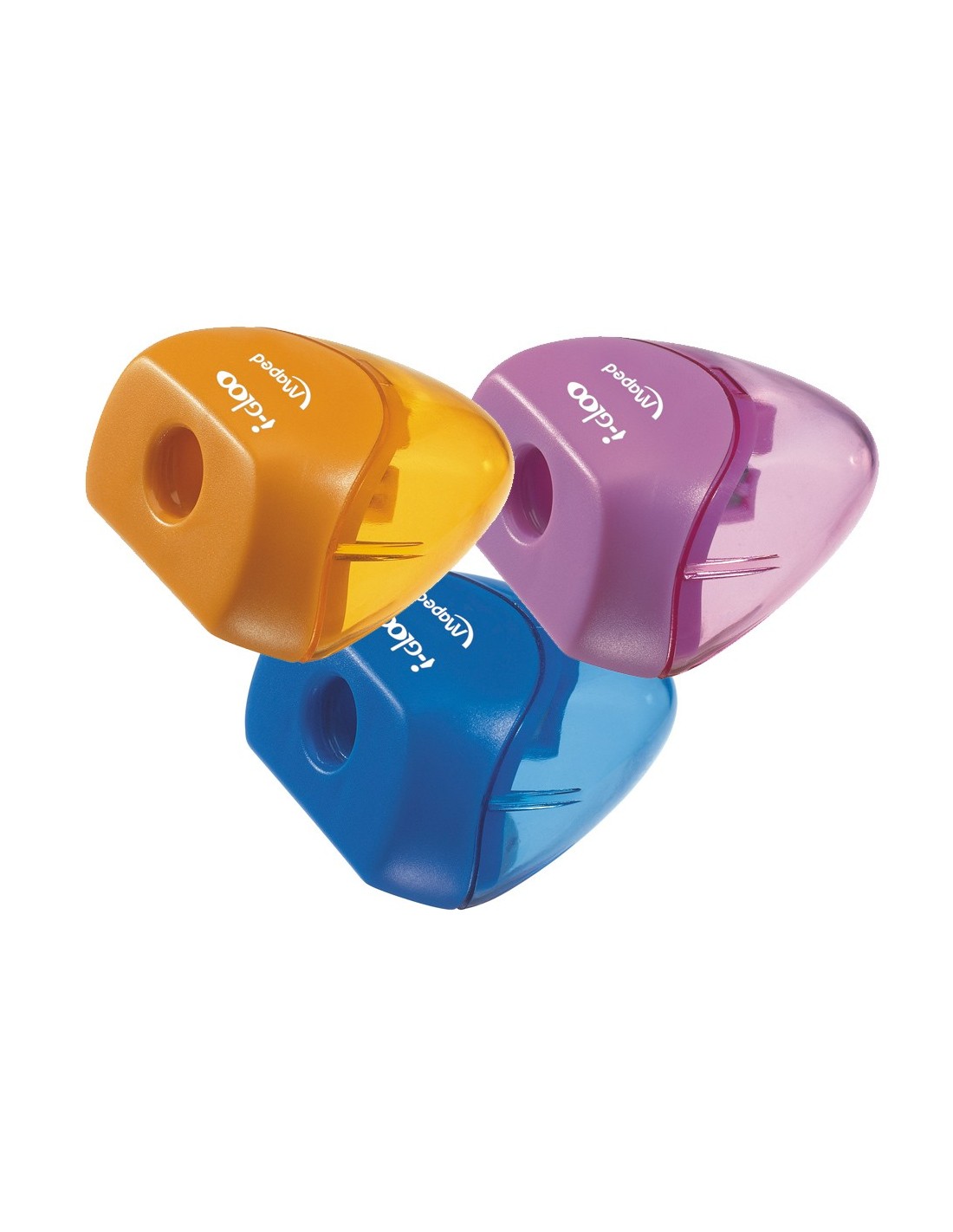 Interior y cobertura de plástico. Contiene depósito para virutas. Colores surtidos. Un uso.