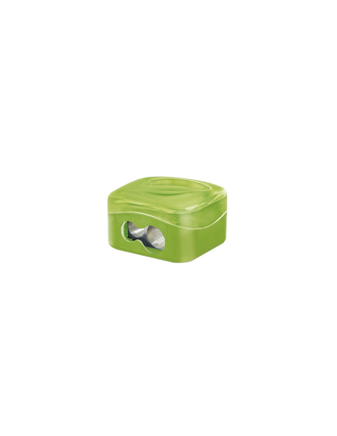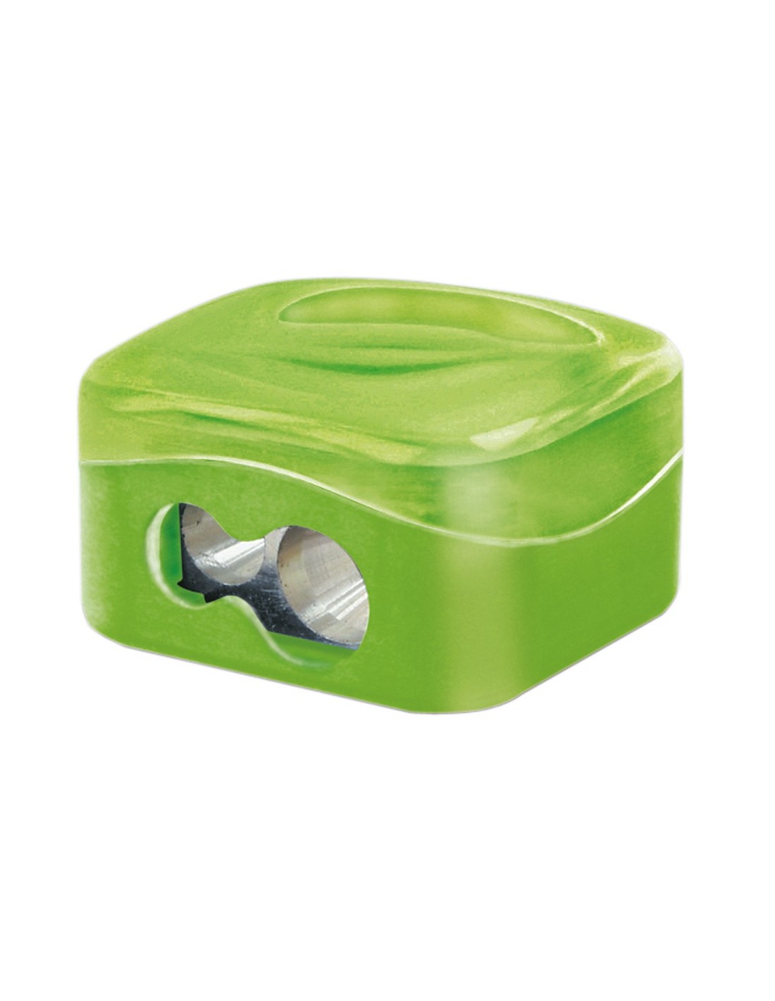 Sacapuntas metálico y cobertura de plástico. Con depósito plano ideal para llevar en el portatodo. Con tapa, que lo hace más seguro para los niños. Colores surtidos. Dos usos.