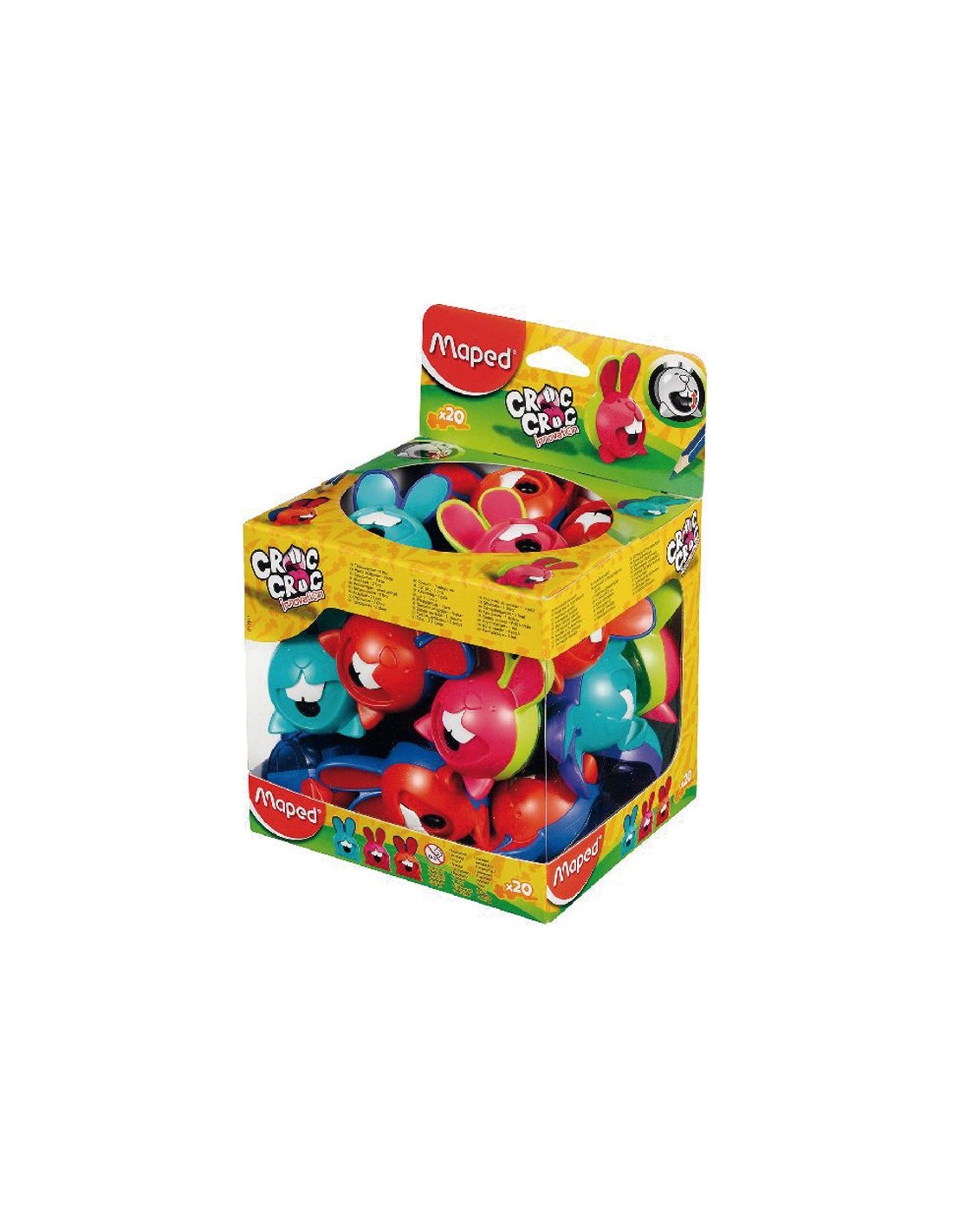 Sacapuntas de plástico infantil. Interactivo: los dientes se mueven al afilar el lápiz. Innovación exclusiva patentada. Colores surtidos. Un uso.