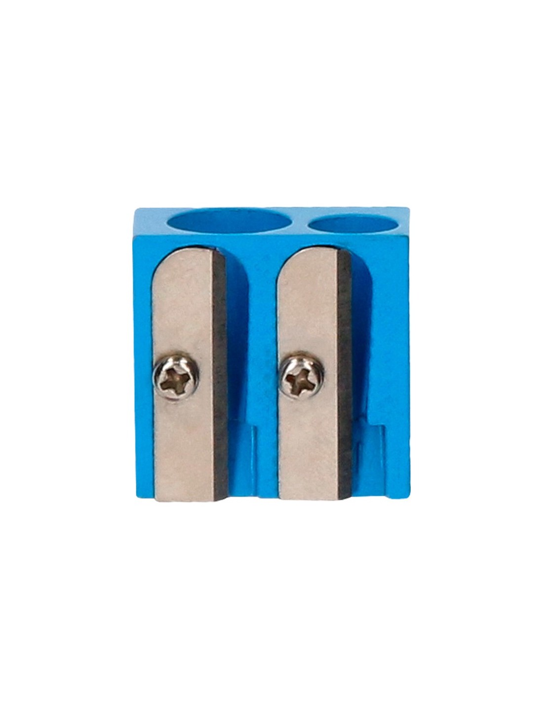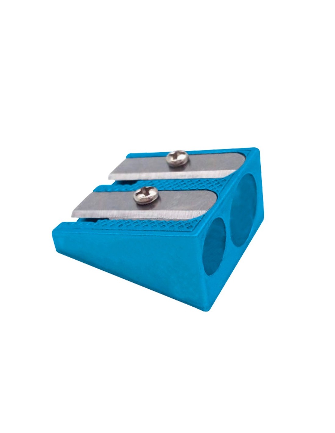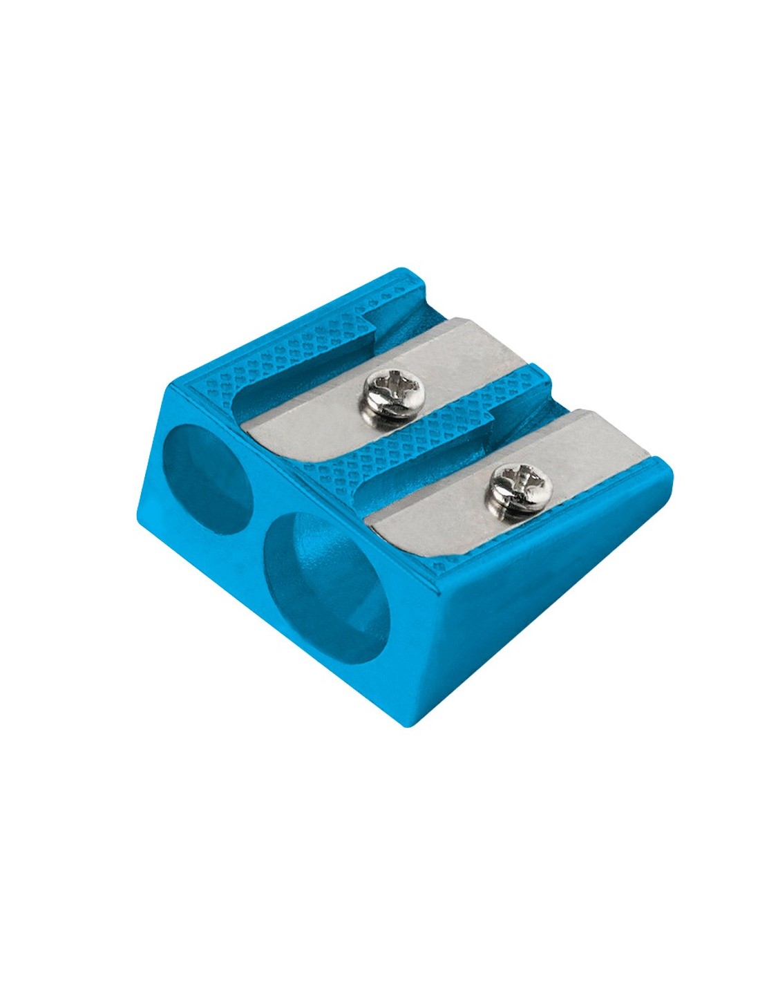 Sacapuntas Liderpapel metálico forma cuña. Cuerpo de aluminio. Gran robustez y resistencia.