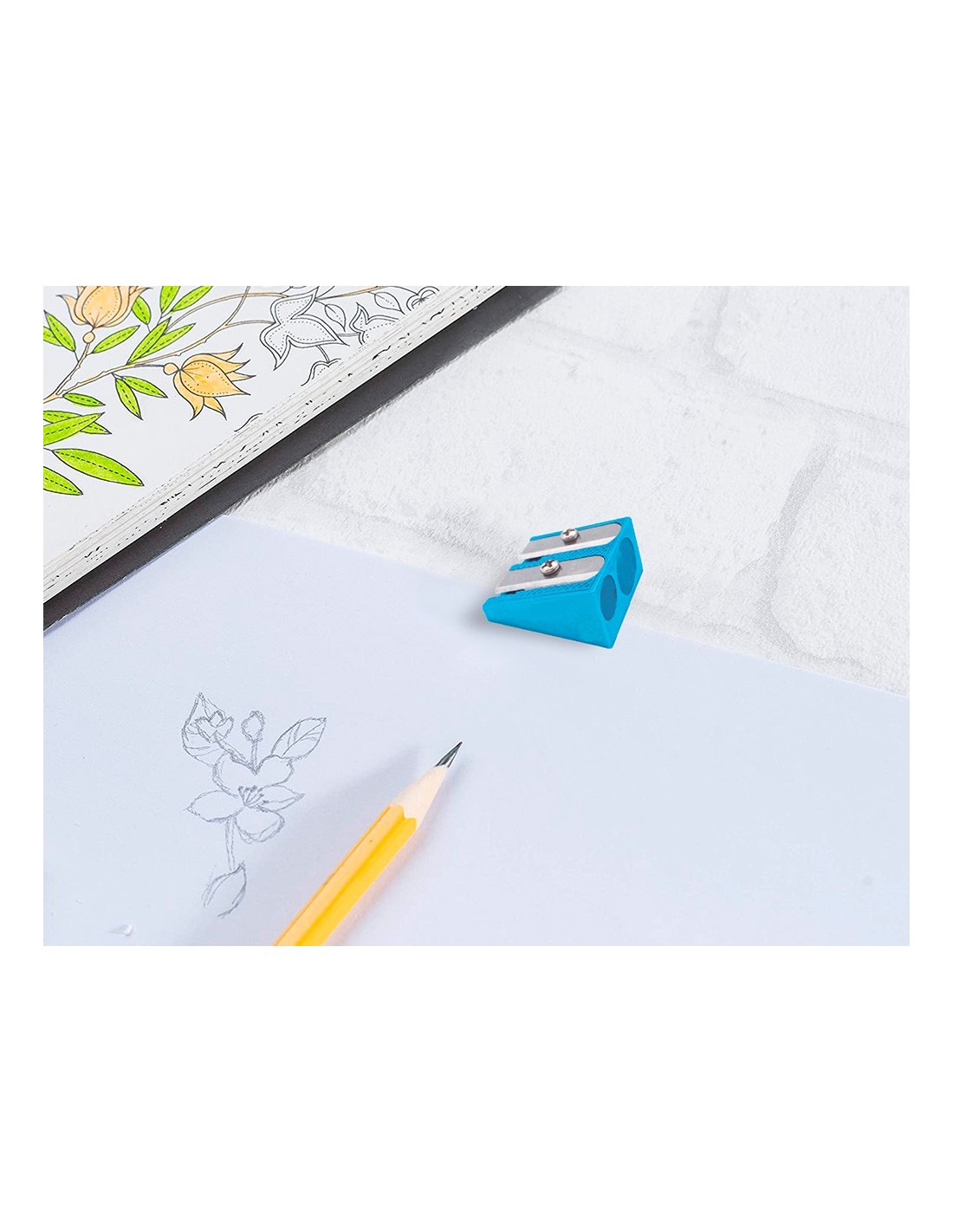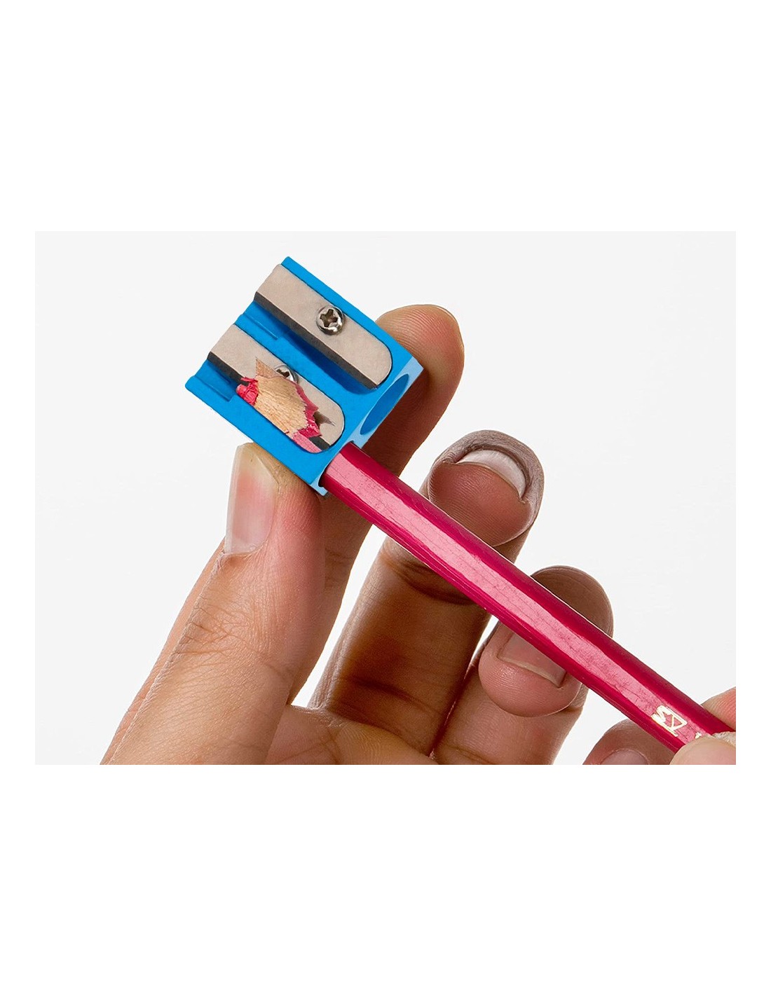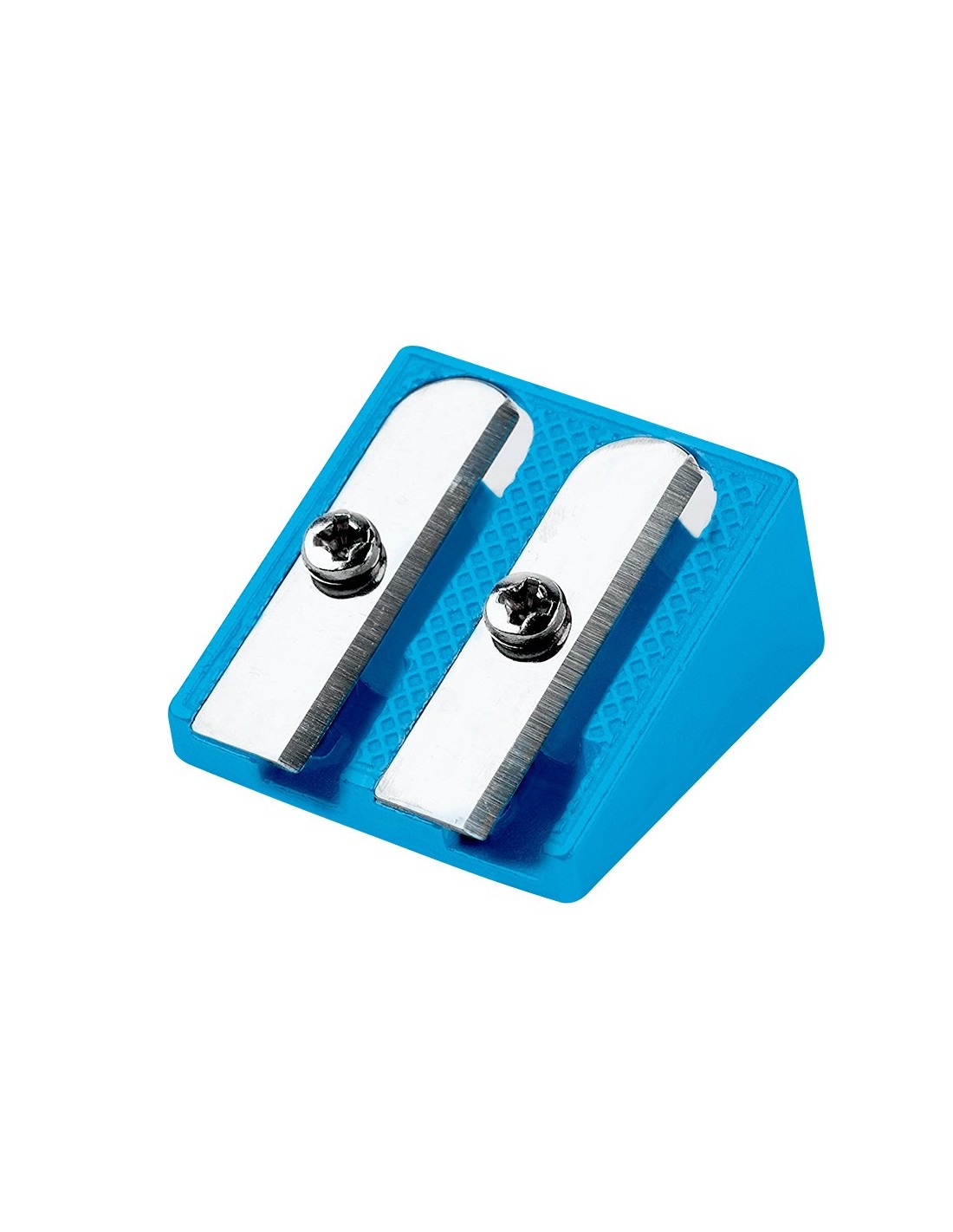 Sacapuntas Liderpapel metálico forma cuña. Cuerpo de aluminio. Gran robustez y resistencia.