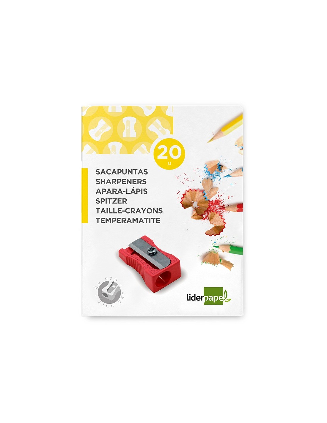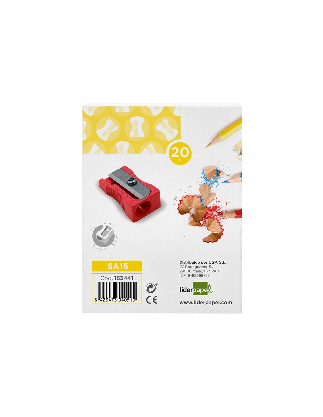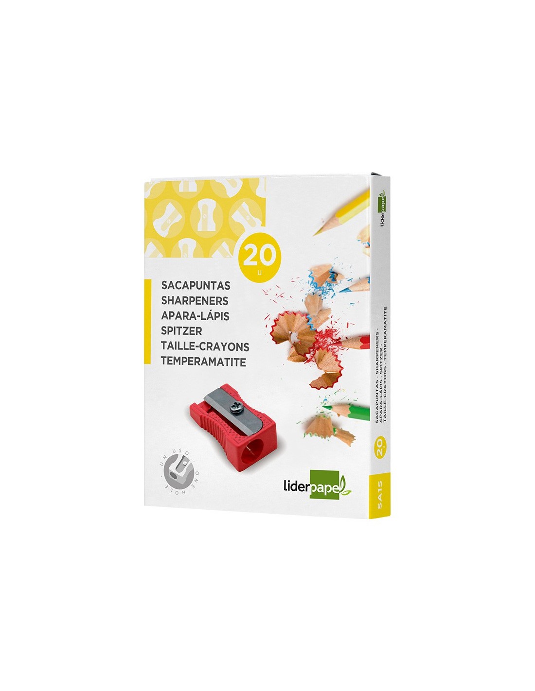 Sacapuntas Liderpapel metálico forma cuña. Cuerpo de aluminio. Gran robustez y resistencia.