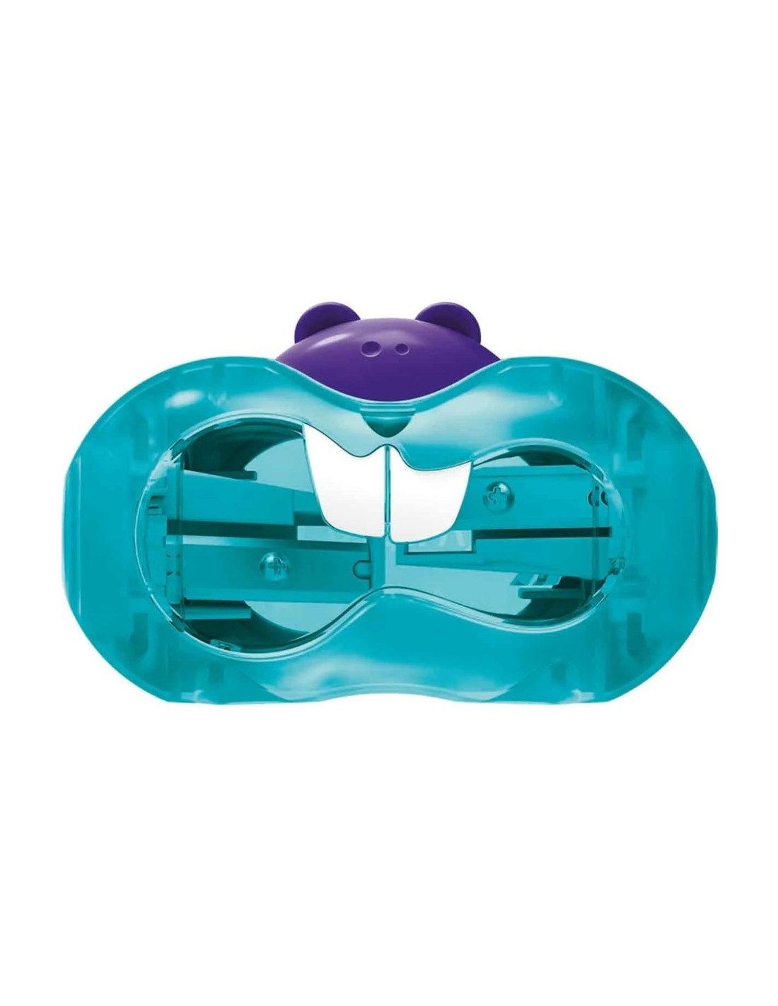 Sacapuntas de plástico infantil con dos orificios para afilar. Expulsa las puntas rotas. Diseño divertido. 3 colores diferentes. Dos usos.