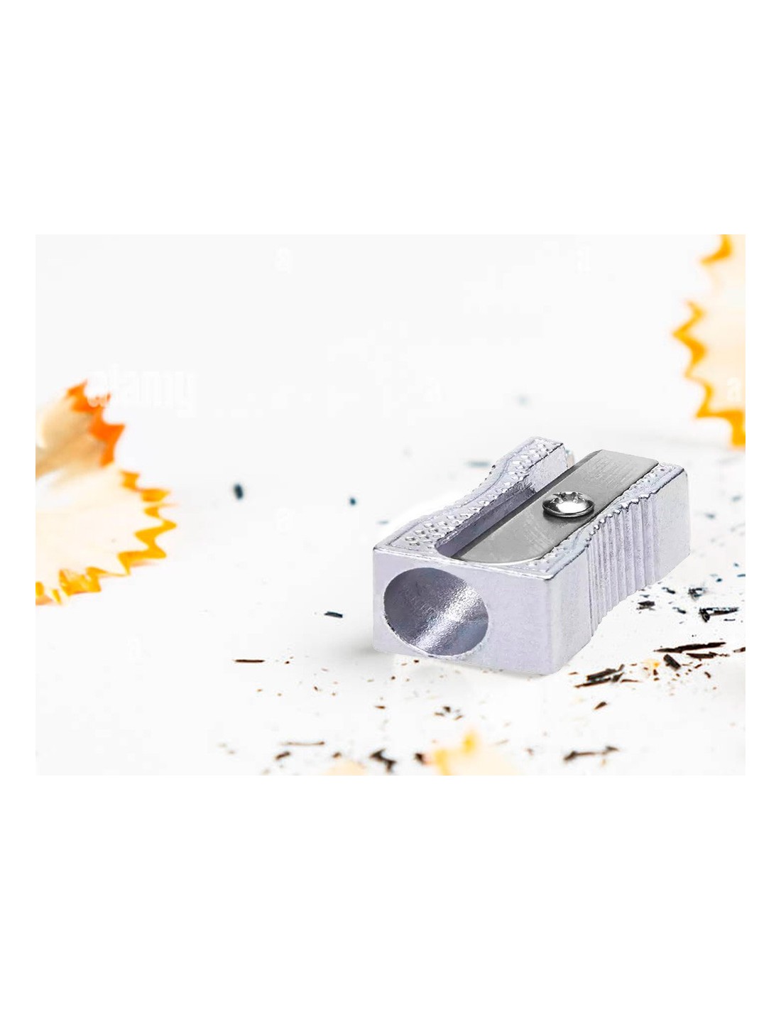 Sacapuntas metálico con forma rectangular. De gran robustez y resistencia.Un uso.