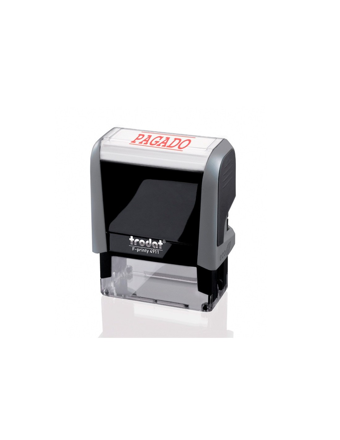 Sello comercial de entintaje automático. Medida del sellado: 38 x 14 mm. Con el texto PAGADO. Tinta de color rojo