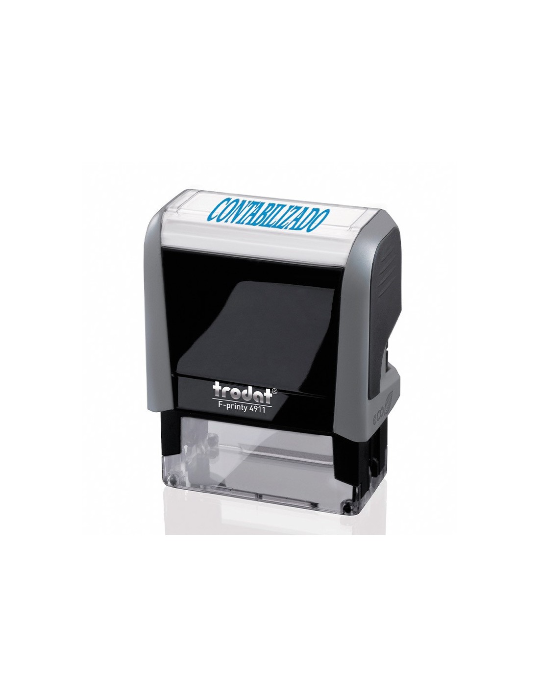 Sello comercial de entintaje automático. Medida del sellado: 38 x 14 mm. Con el texto CONTABILIZADO. Tinta de color azul