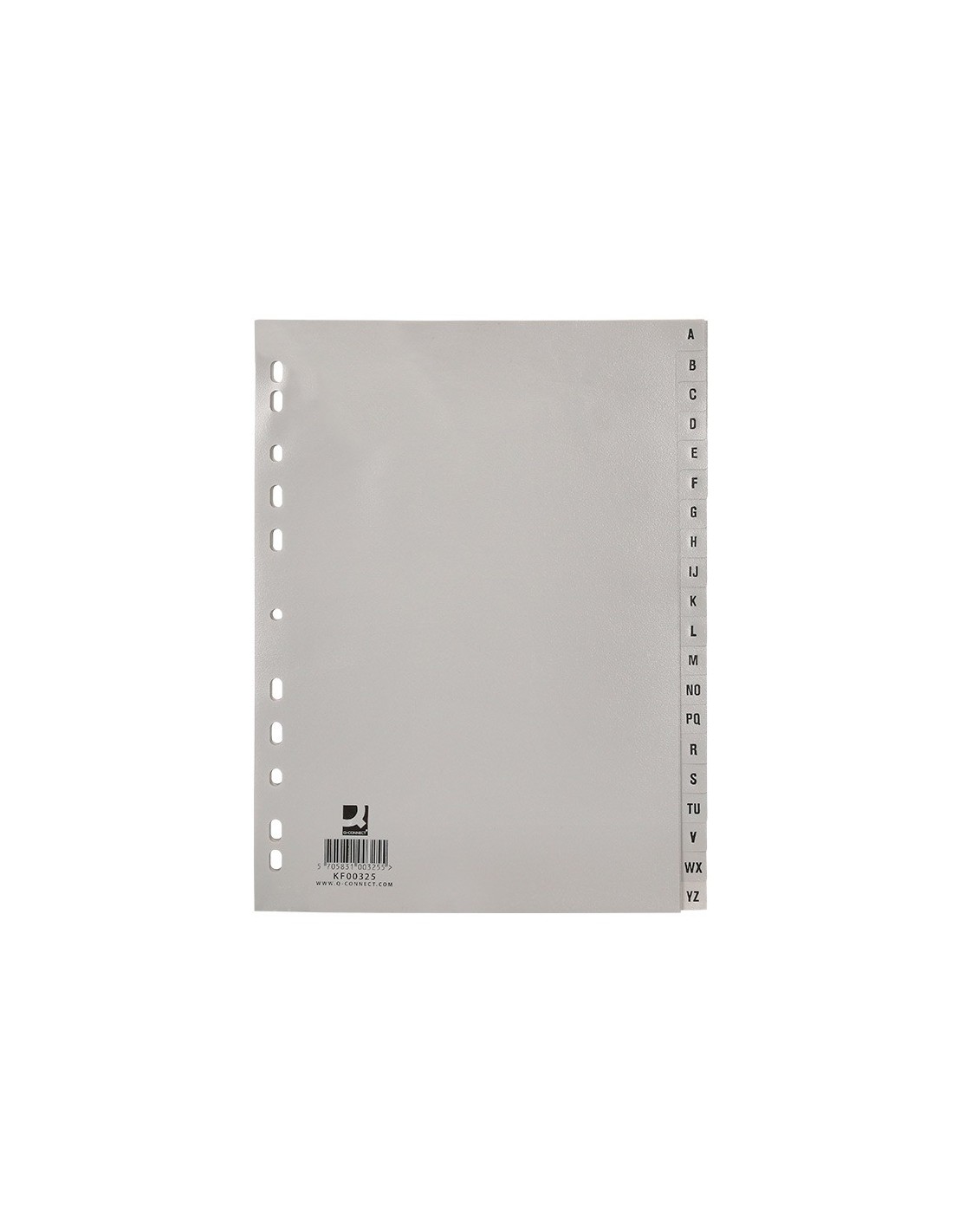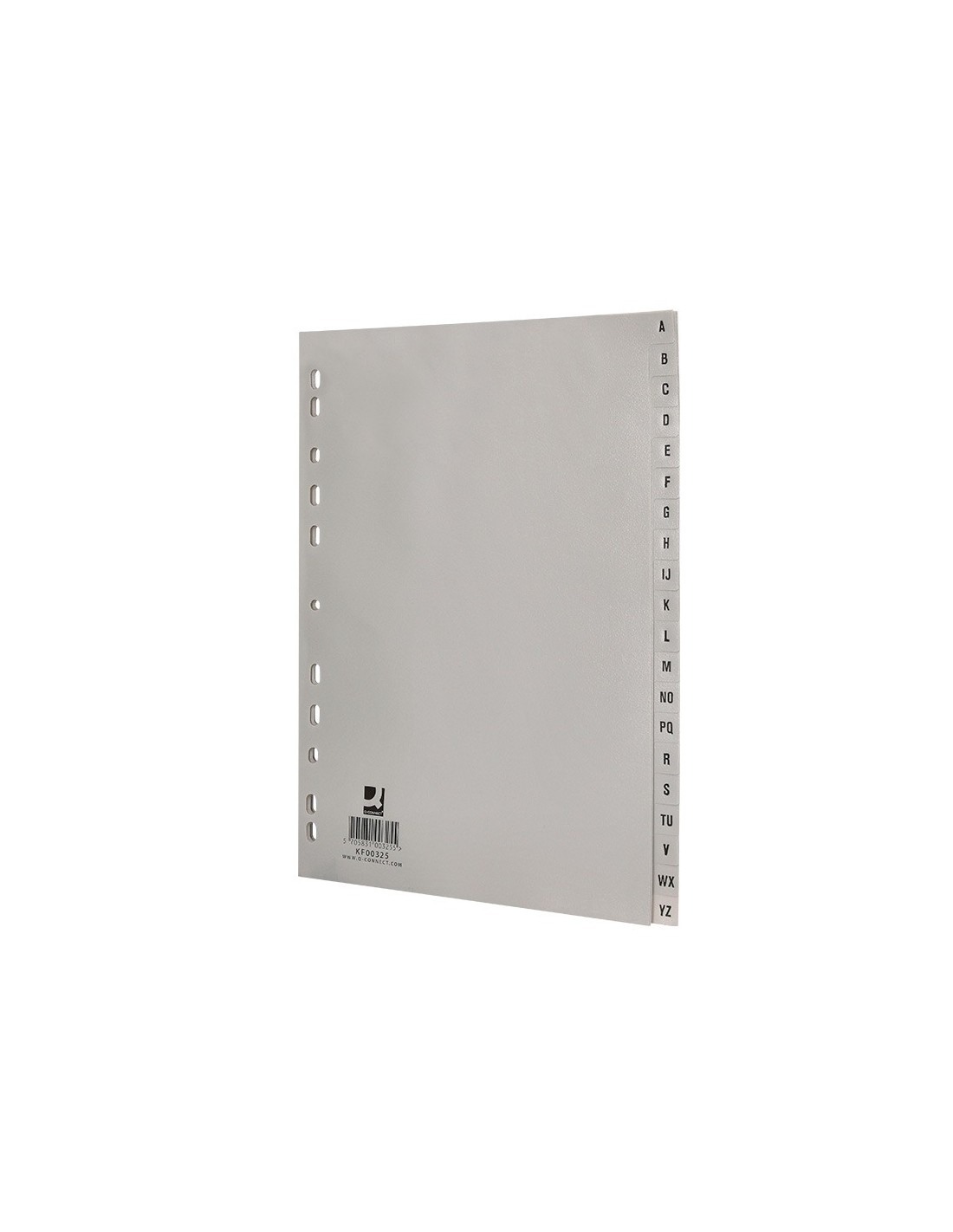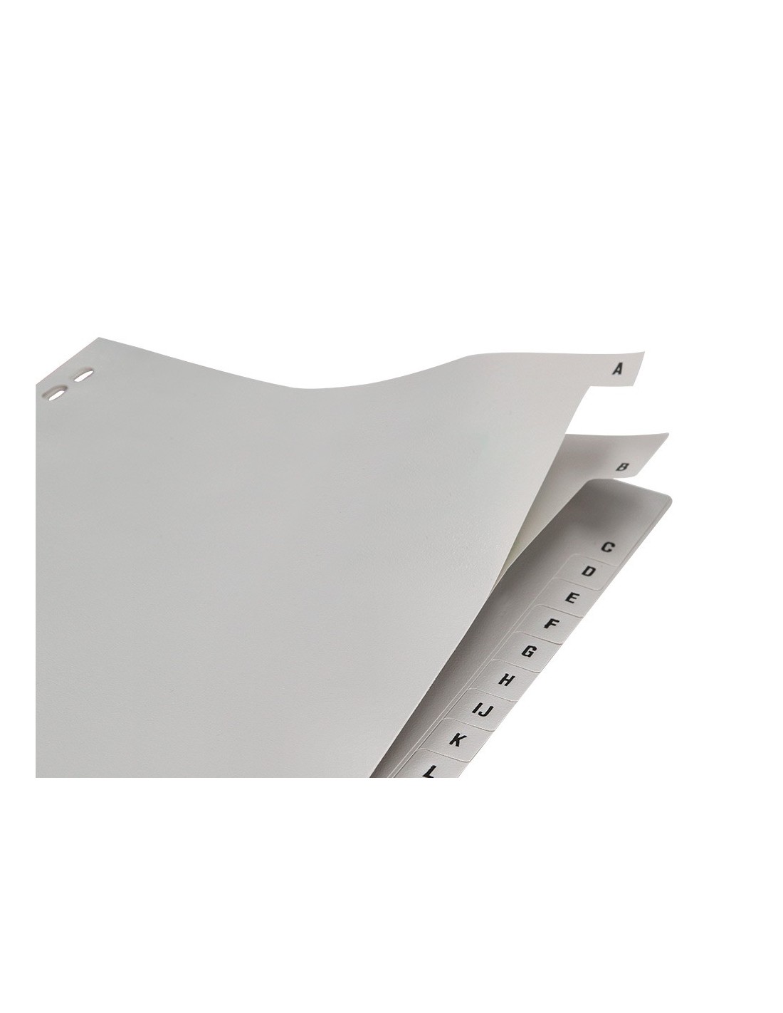 Fabricados en PVC, en color gris. 120 micras. Multitaladro. Para la clasificación y ordenación alfabética del documento. Grabación del alfabeto en las pestañas. Formato DIN A4.