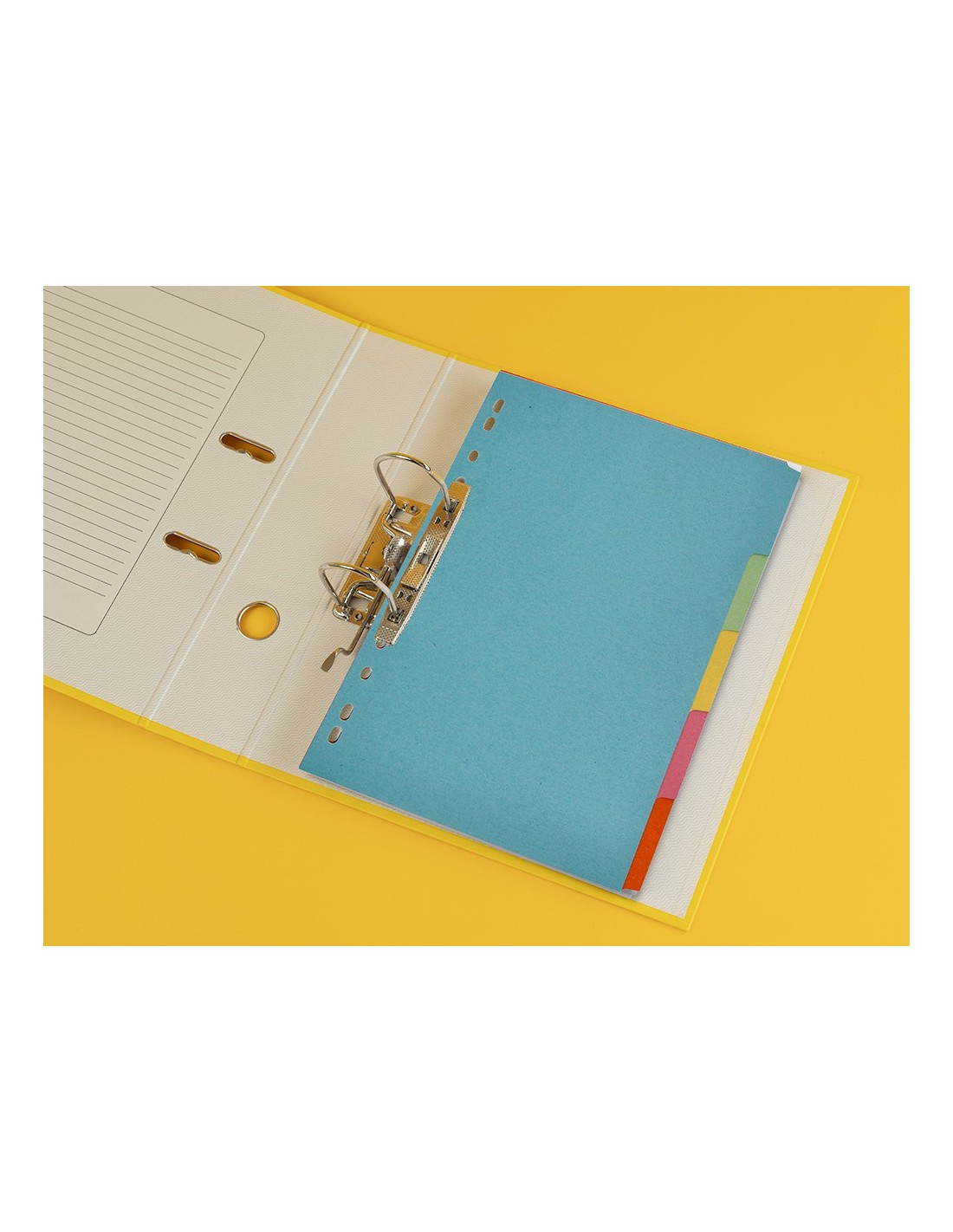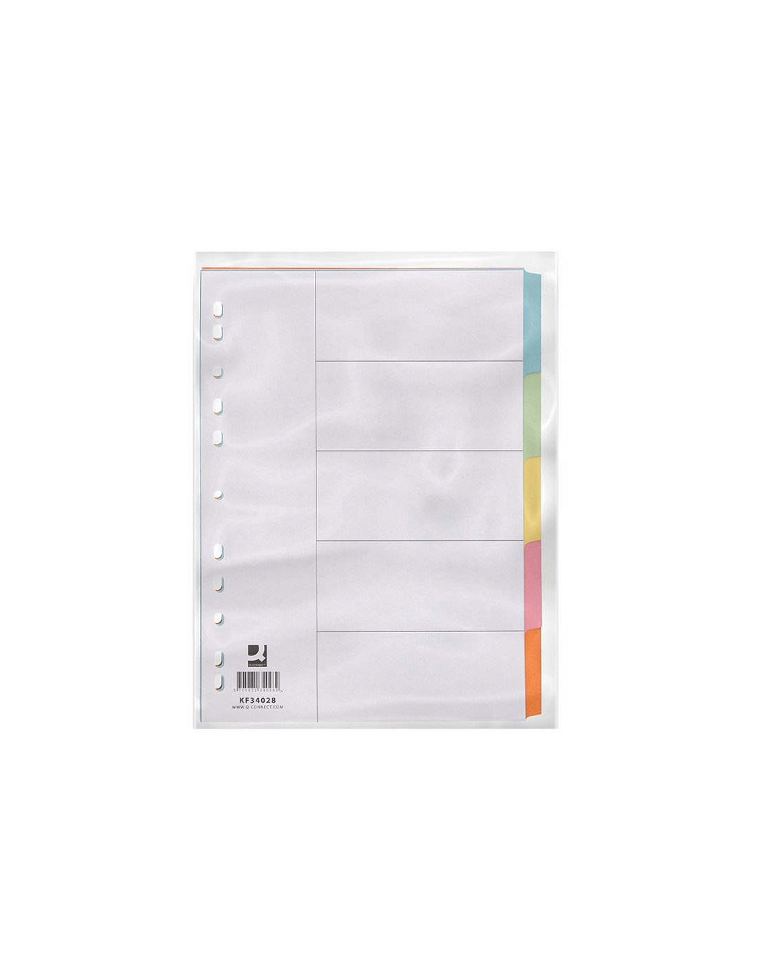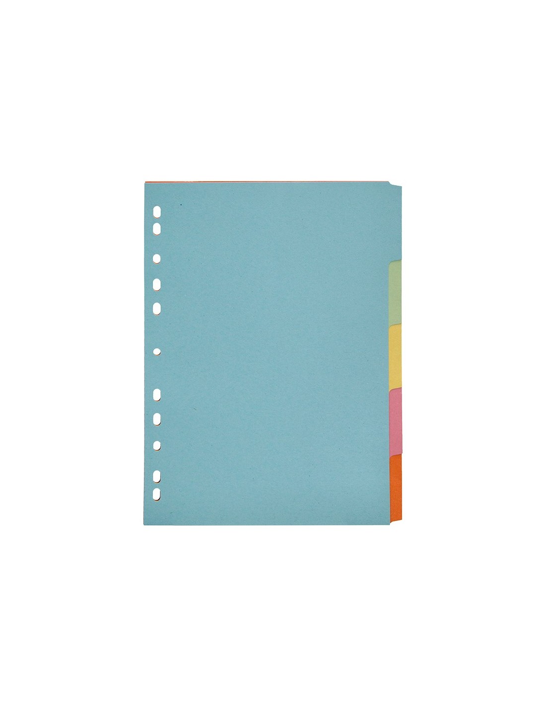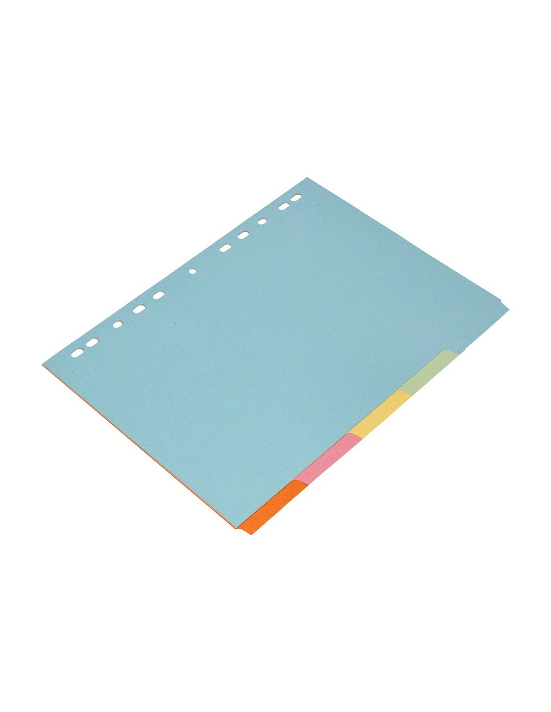 Juego de separadores fabricados en cartón de 175 g/m². Pestañas en colores pastel. Para archivar en diferentes mecanismos de anillas. Incluye carátula con índice.