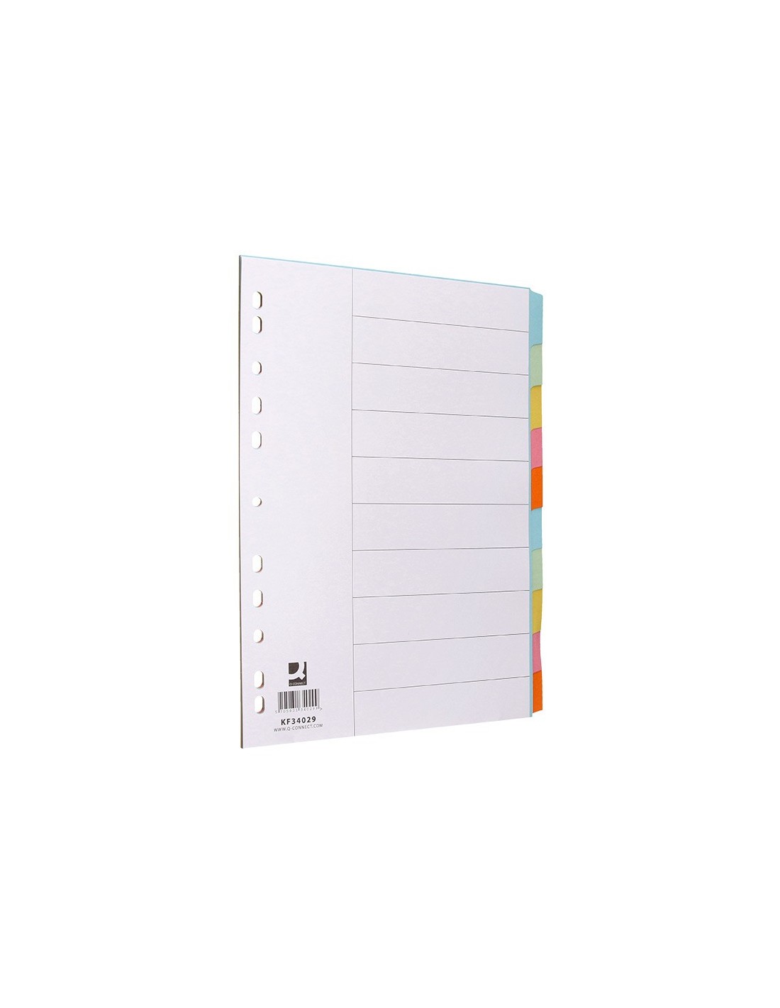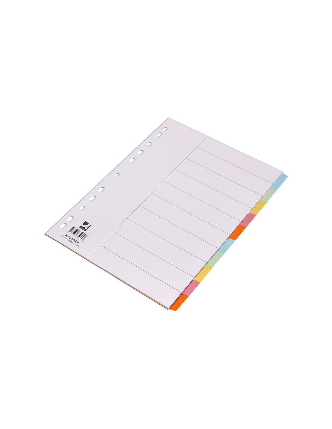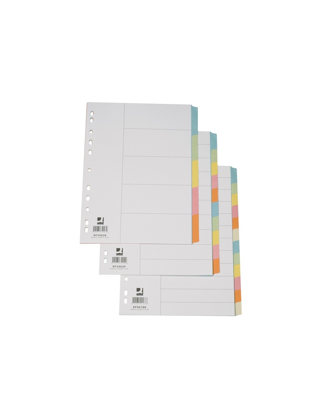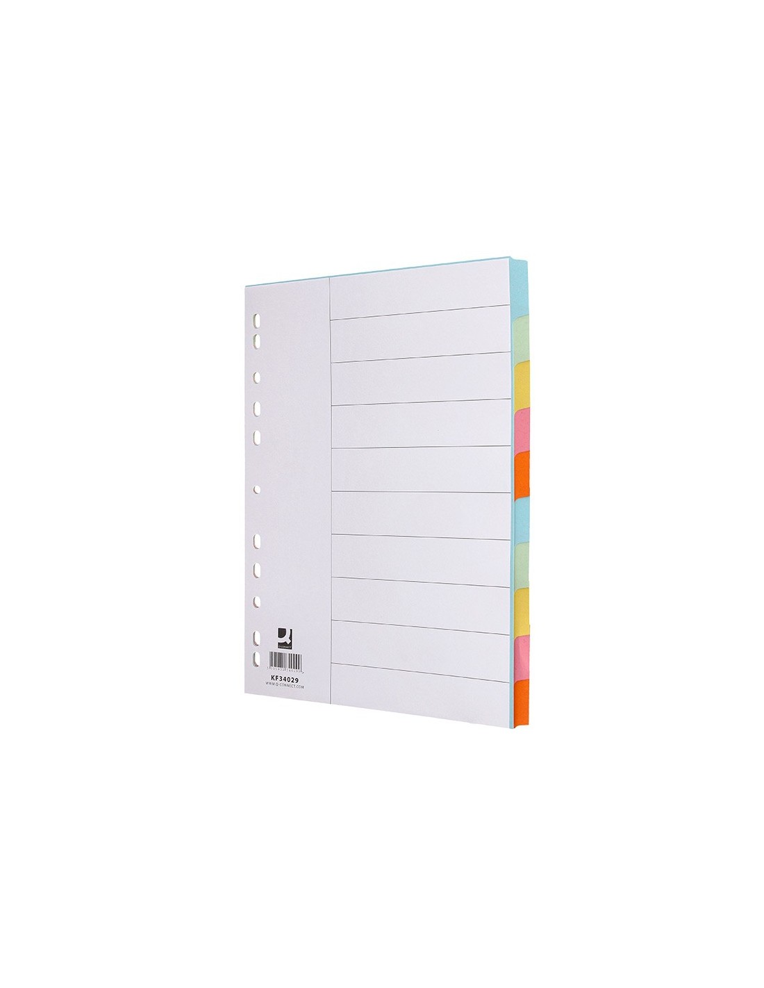 Juego de separadores fabricados en cartón de 175 g/m². Pestañas en colores pastel. Para archivar en diferentes mecanismos de anillas. Incluye carátula con índice.