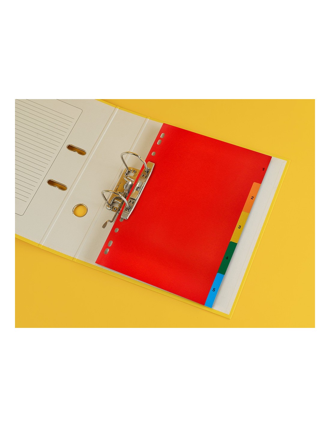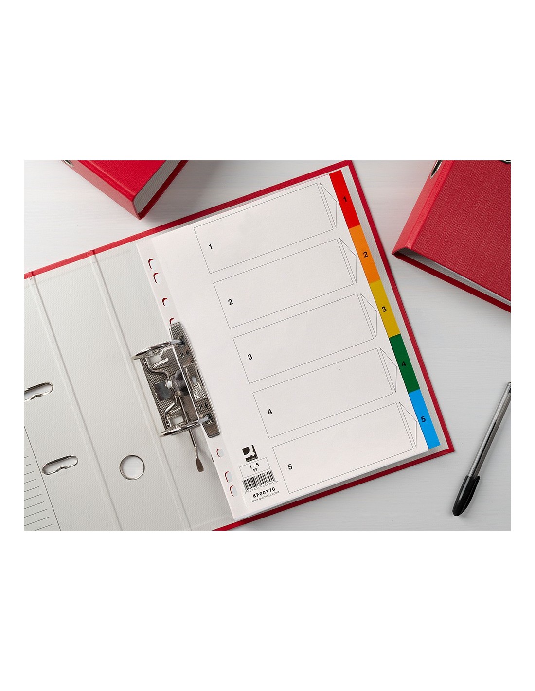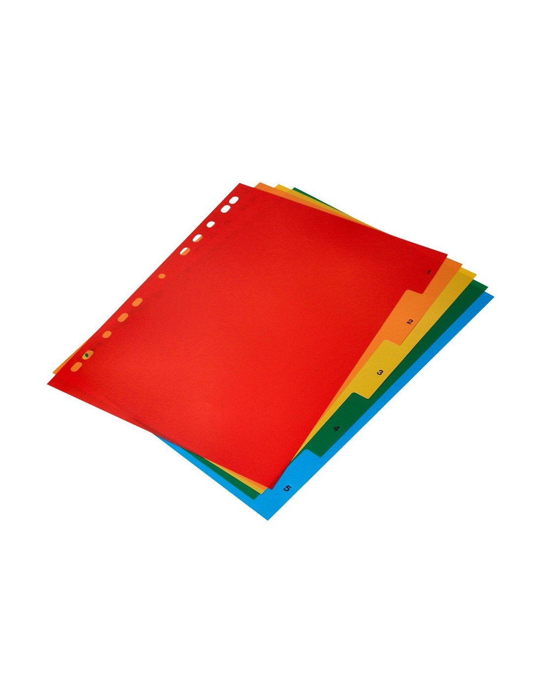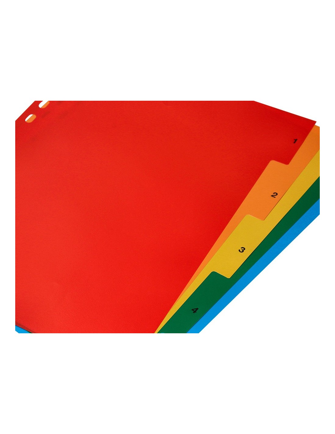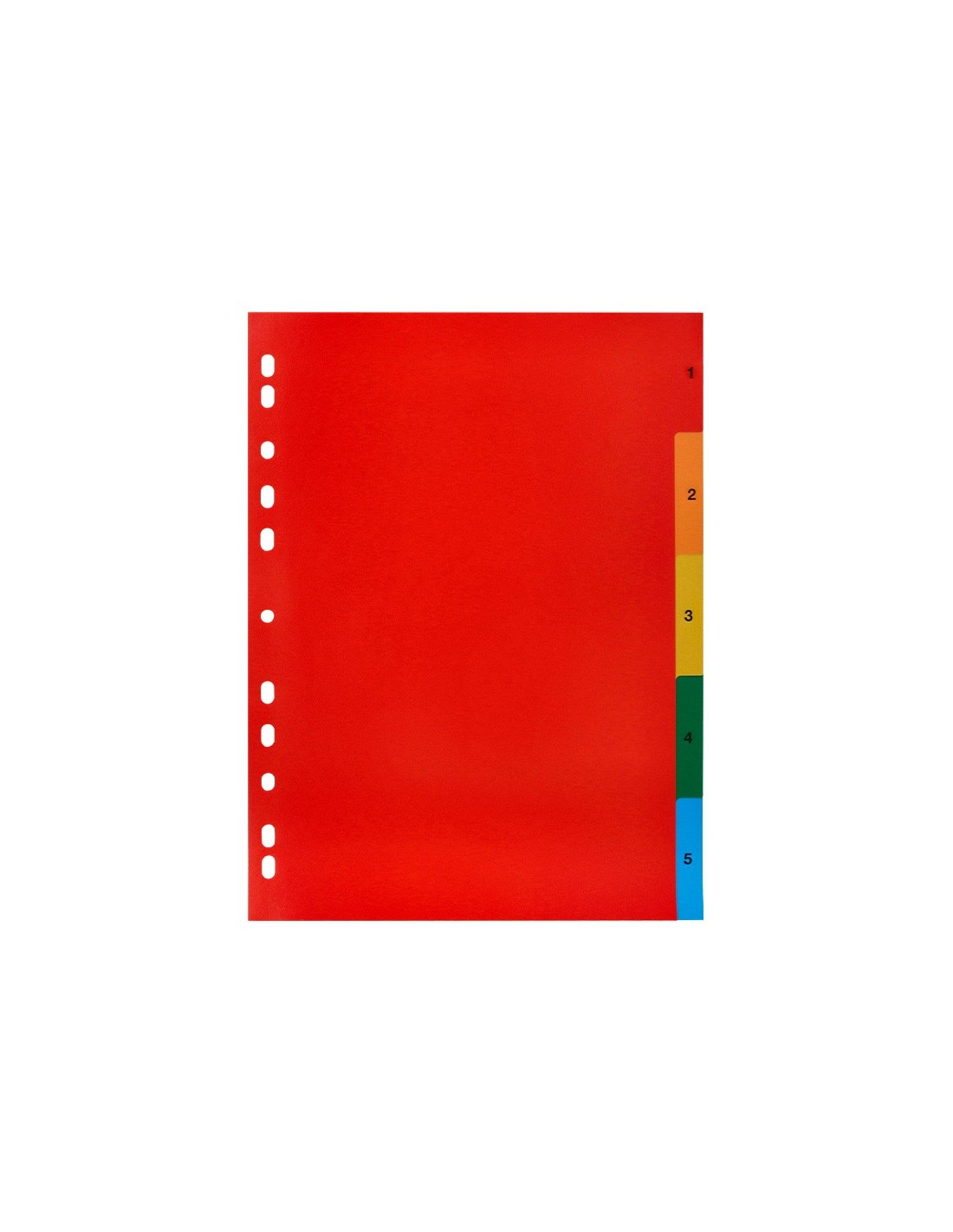 Juego de separadores fabricados en PVC de 125 micras. Colores opacos. Perforación multitaladro, para archivar en diferentes mecanismos de anillas. Incluye carátula con índice. Formato Din A4.