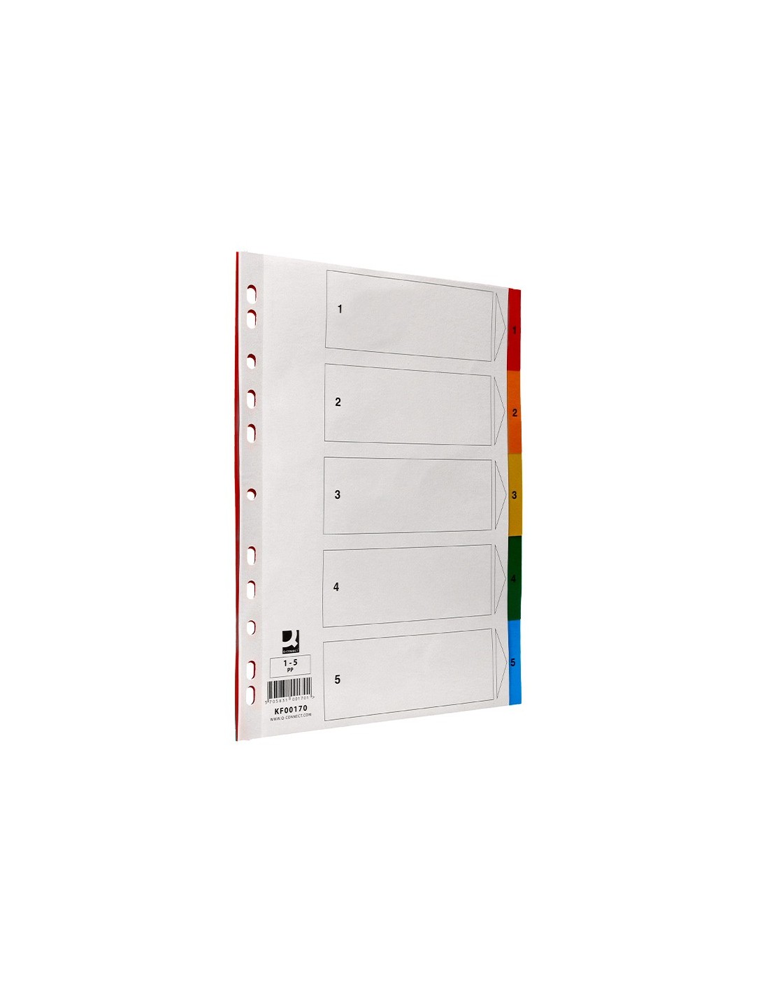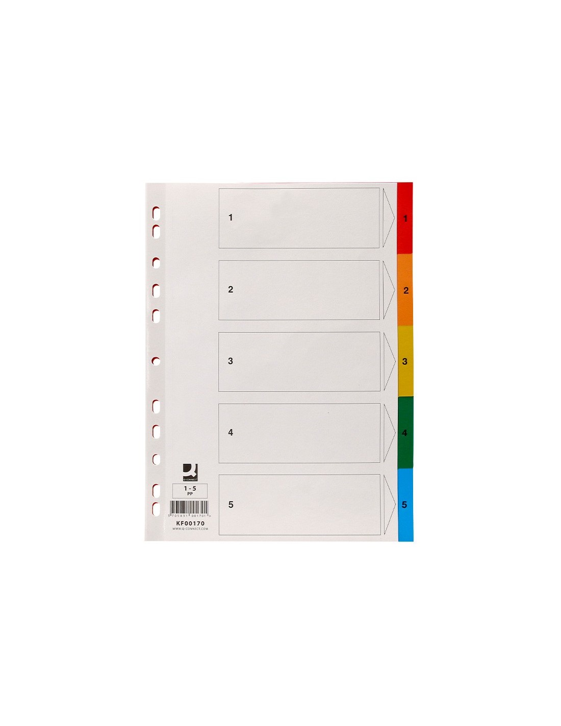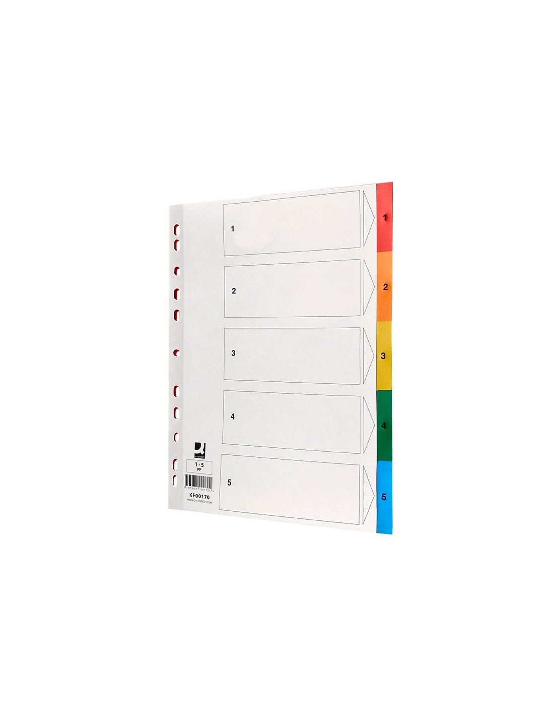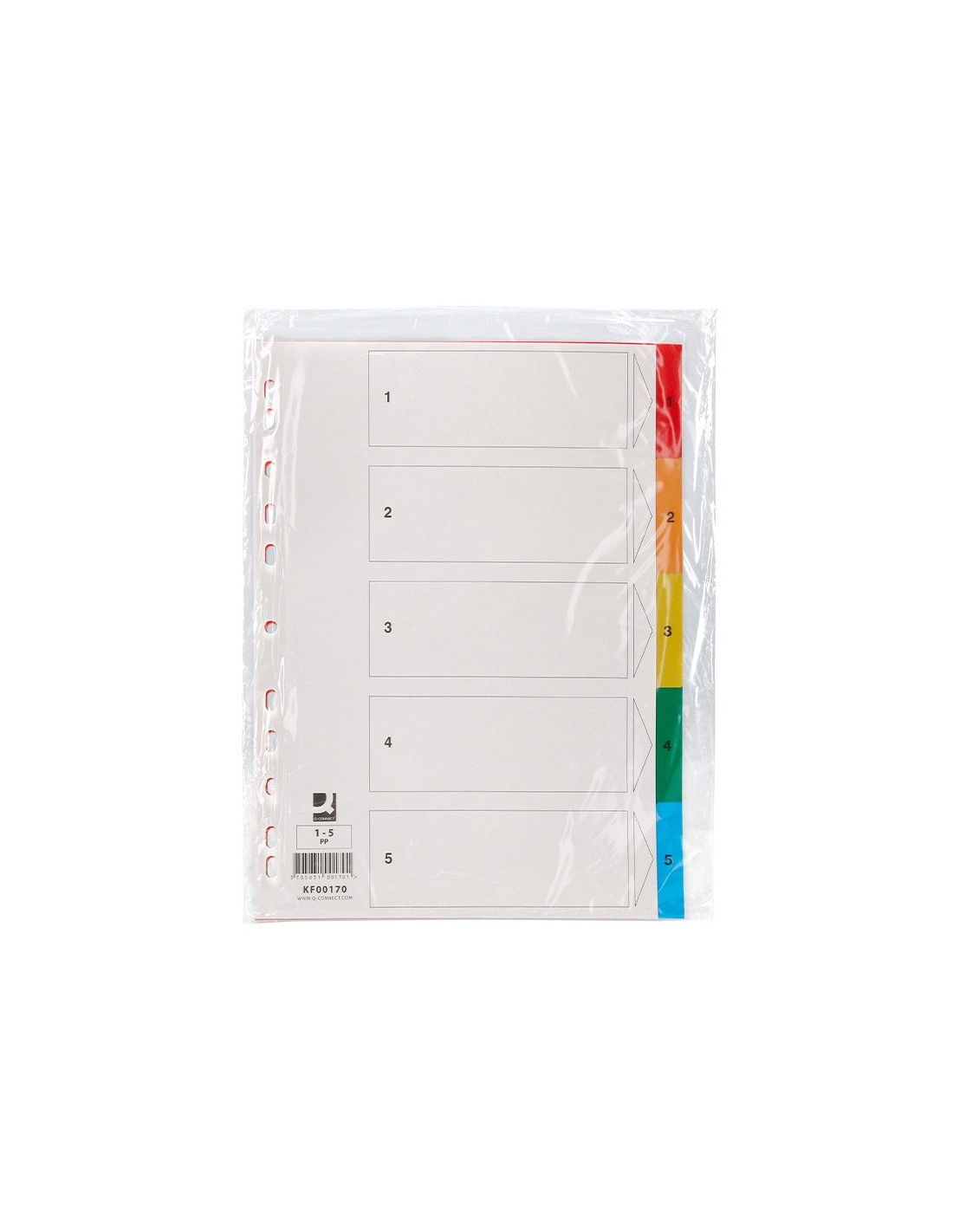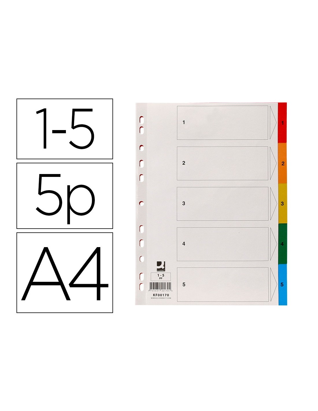 Juego de separadores fabricados en PVC de 125 micras. Colores opacos. Perforación multitaladro, para archivar en diferentes mecanismos de anillas. Incluye carátula con índice. Formato Din A4.