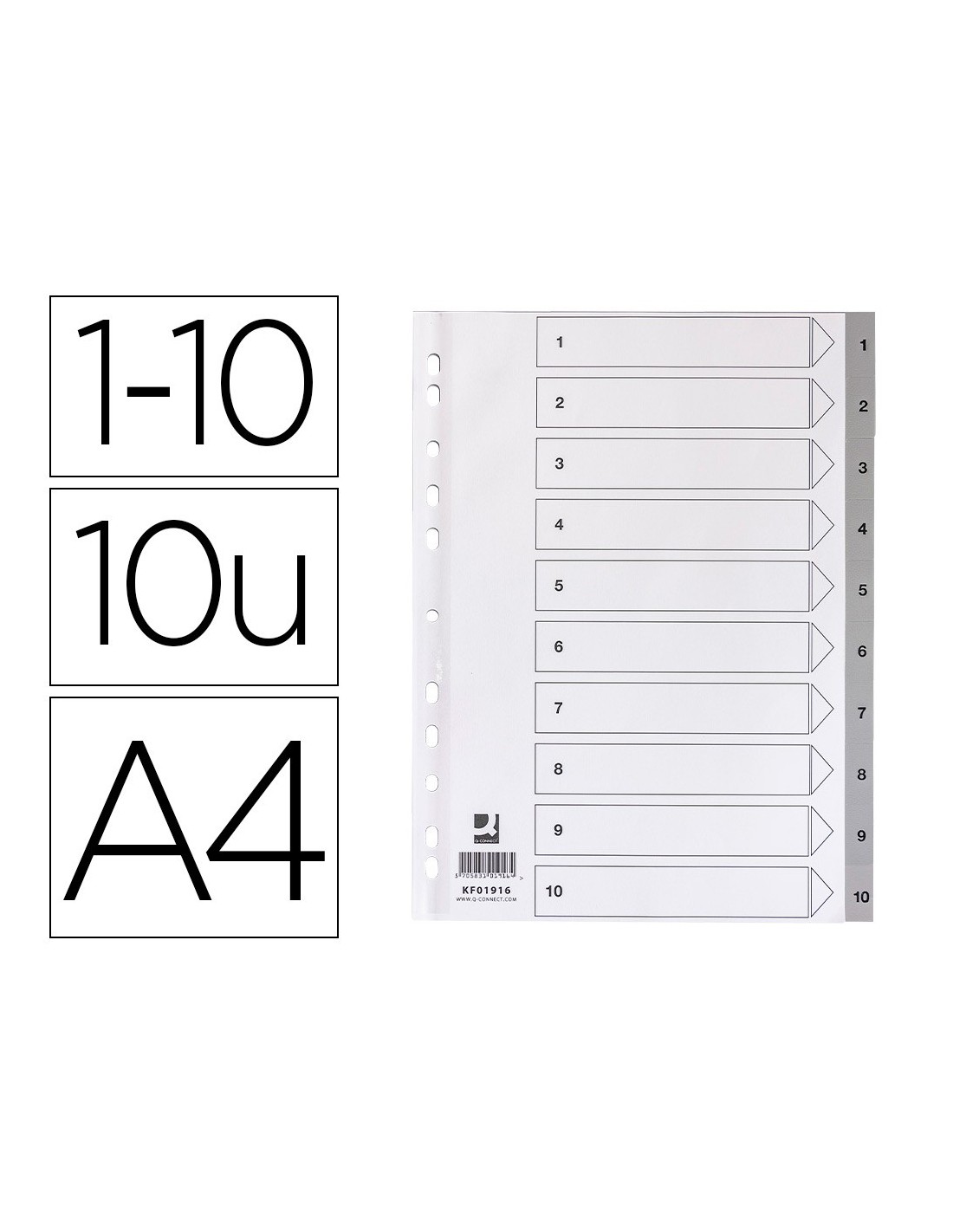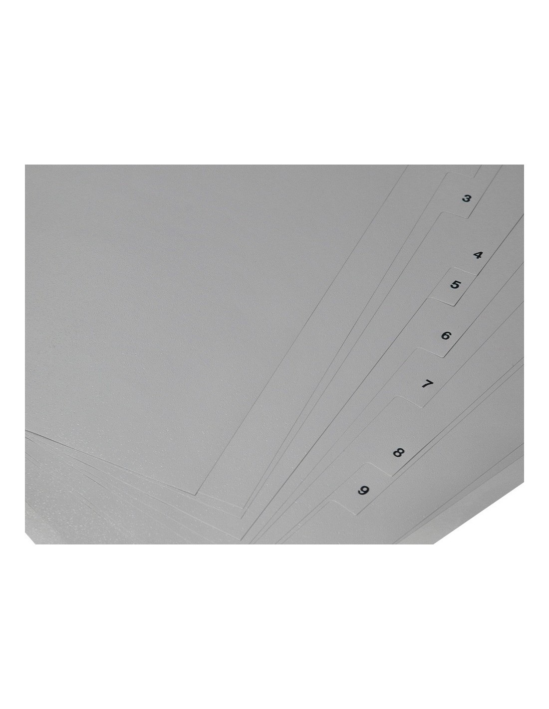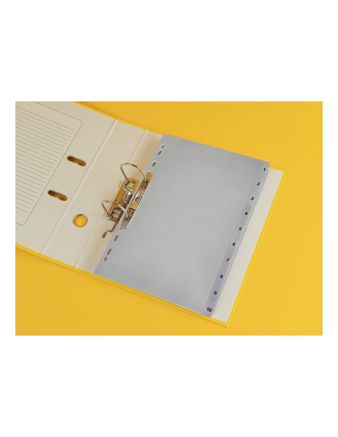 Fabricados en PVC para la clasificación y ordenación numérica de los documentos. 120 micras. En color gris con carátula de cartulina para índice. Multitaladro. Formato Din A4.