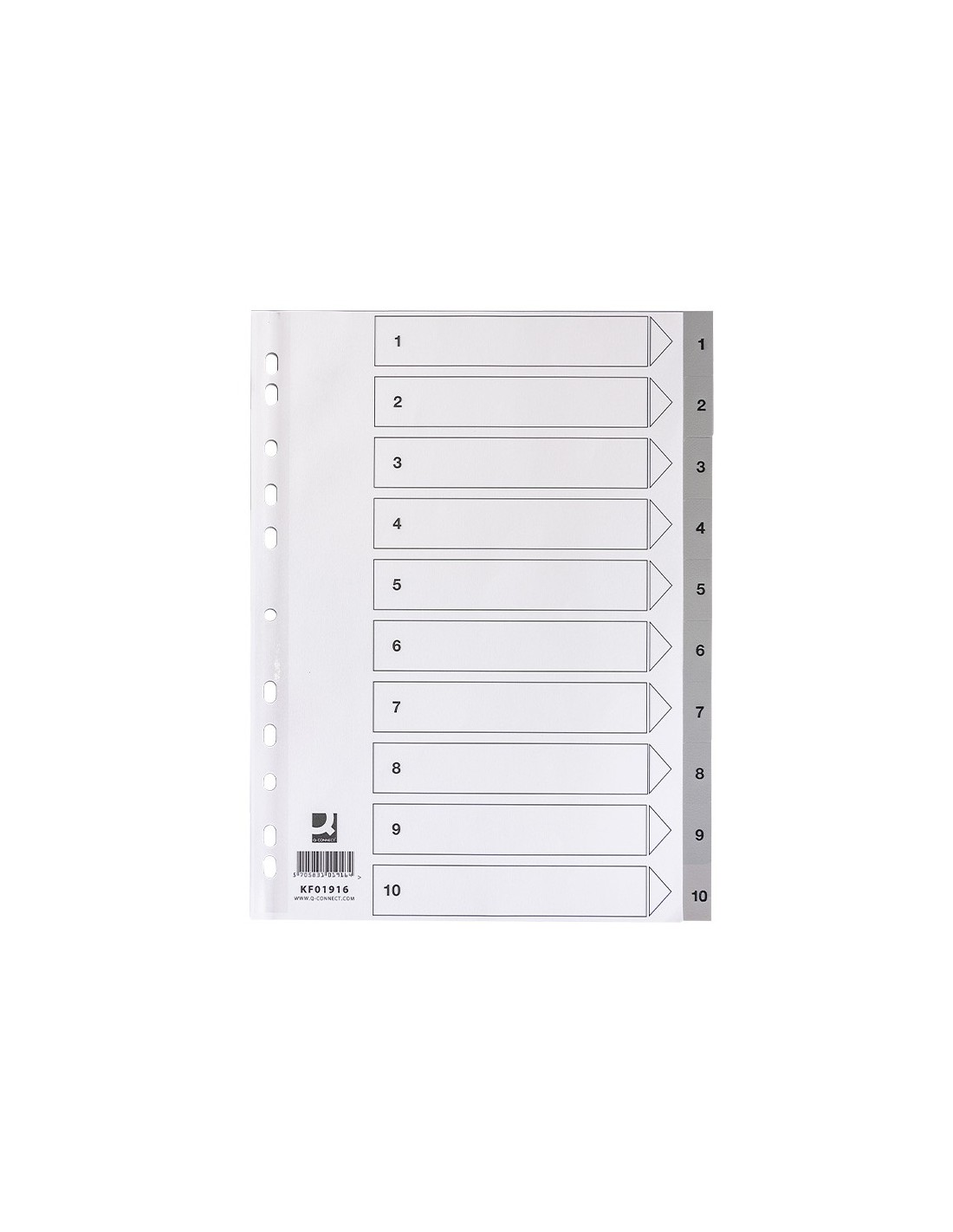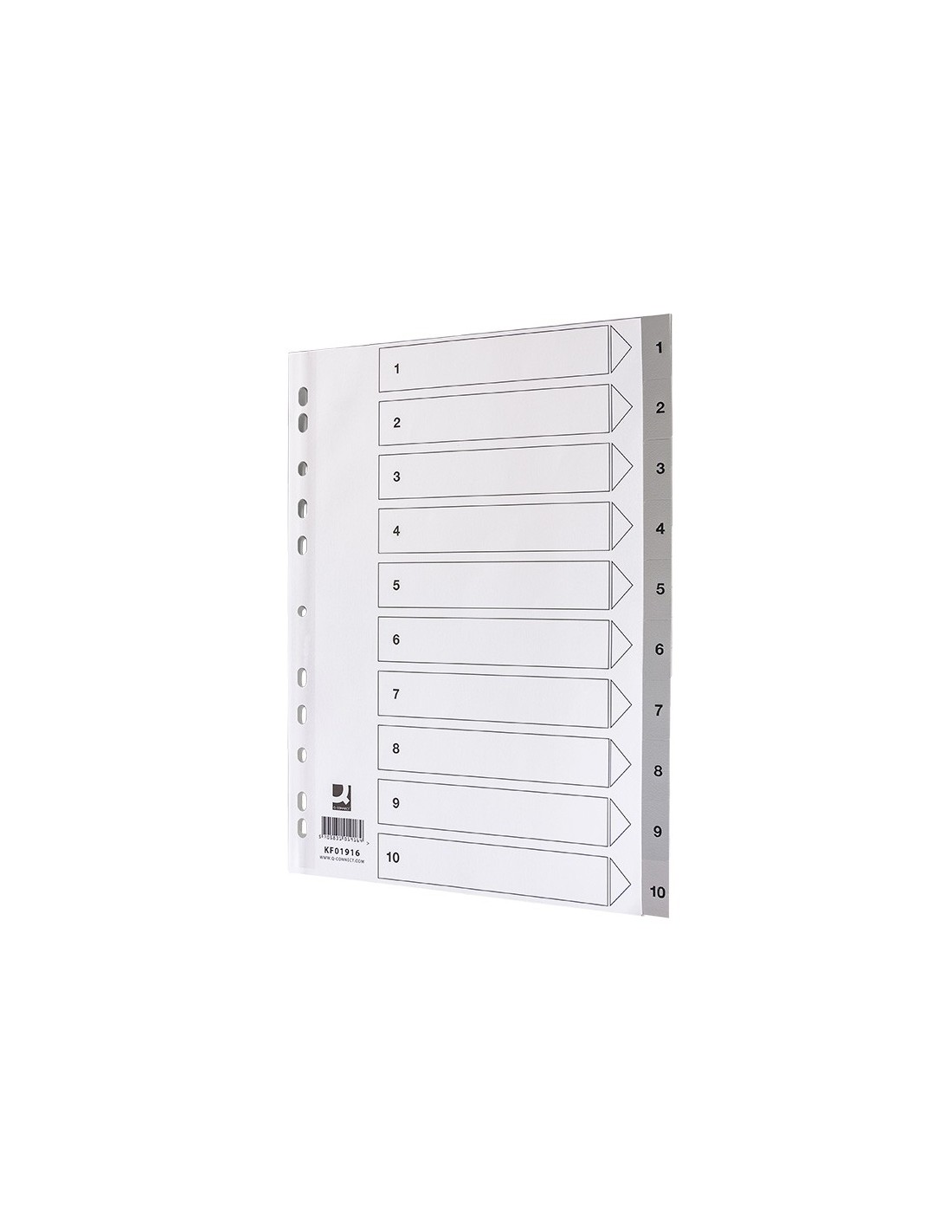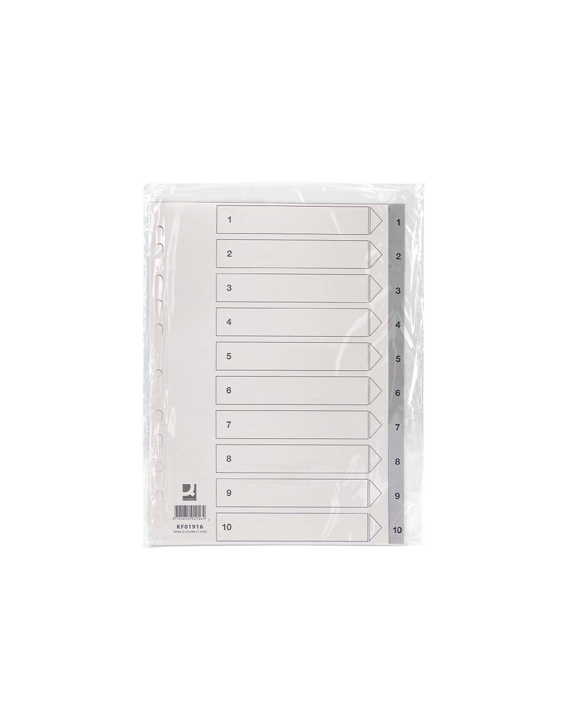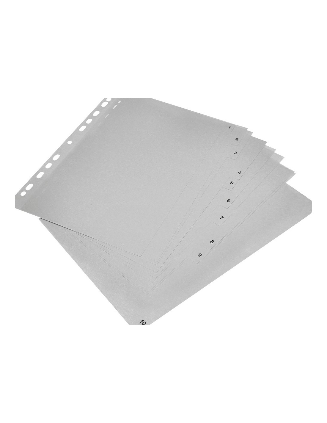 Fabricados en PVC para la clasificación y ordenación numérica de los documentos. 120 micras. En color gris con carátula de cartulina para índice. Multitaladro. Formato Din A4.