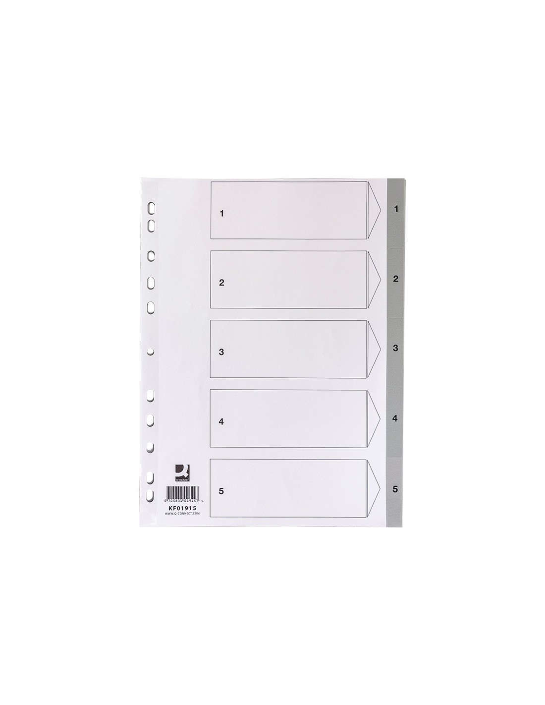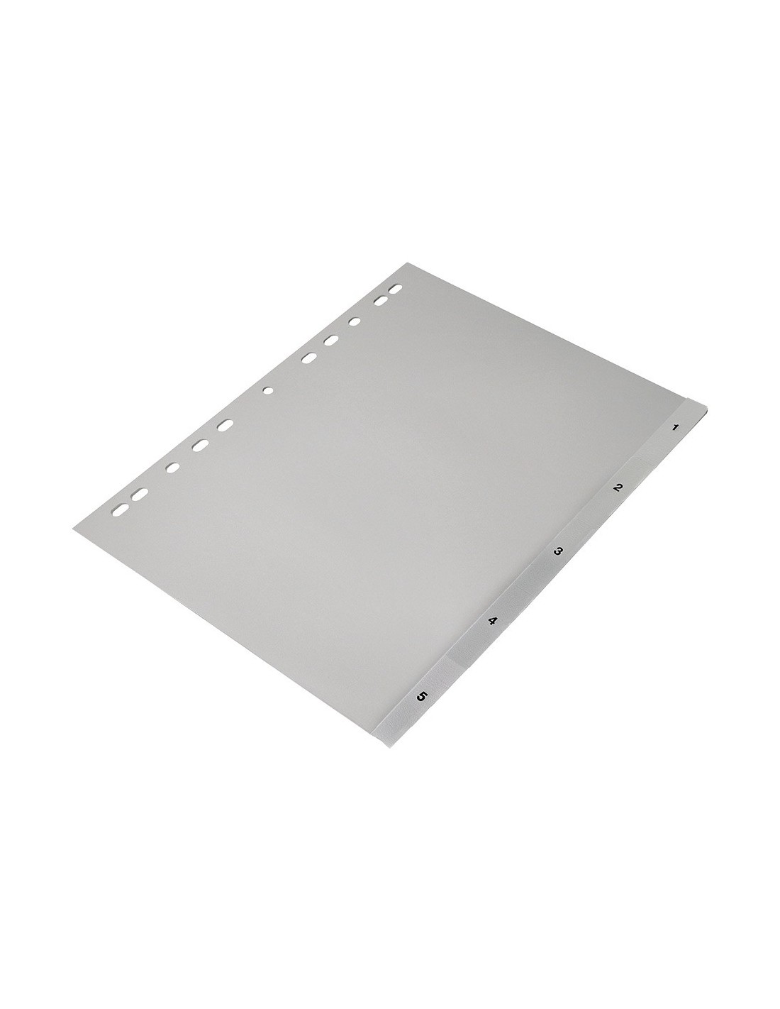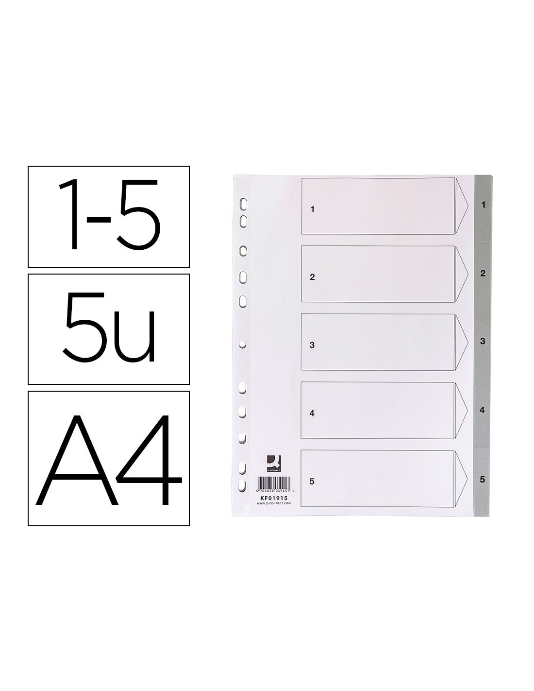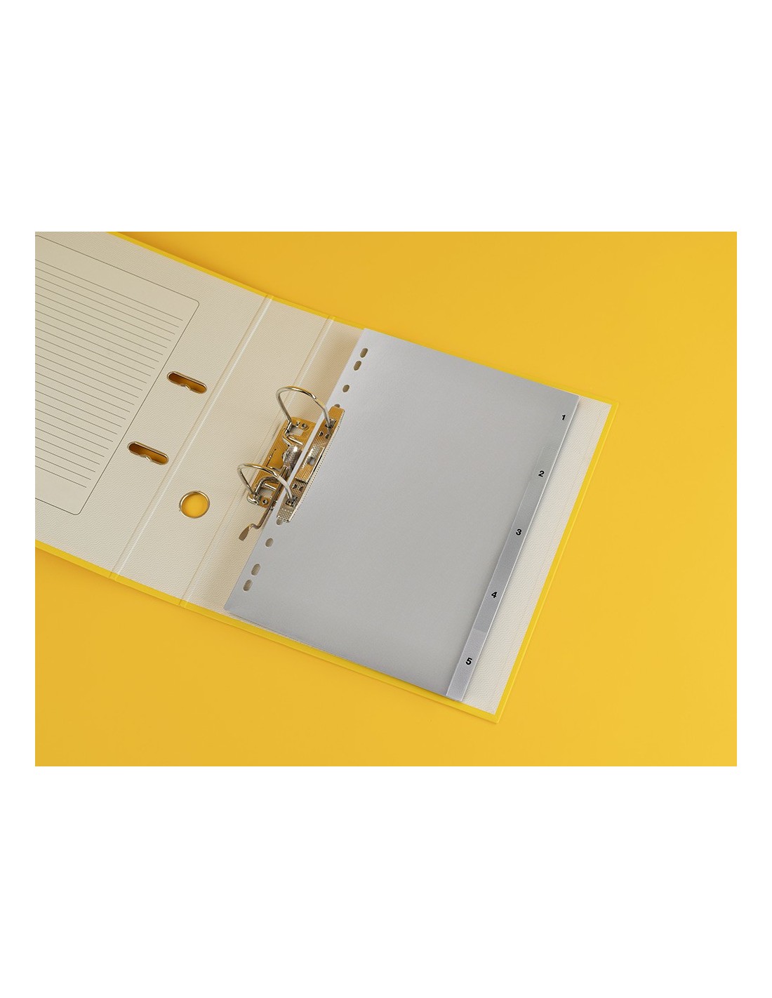 Fabricados en PVC para la clasificación y ordenación numérica de los documentos. 120 micras. En color gris con carátula de cartulina para índice. Multitaladro. Formato Din A4.